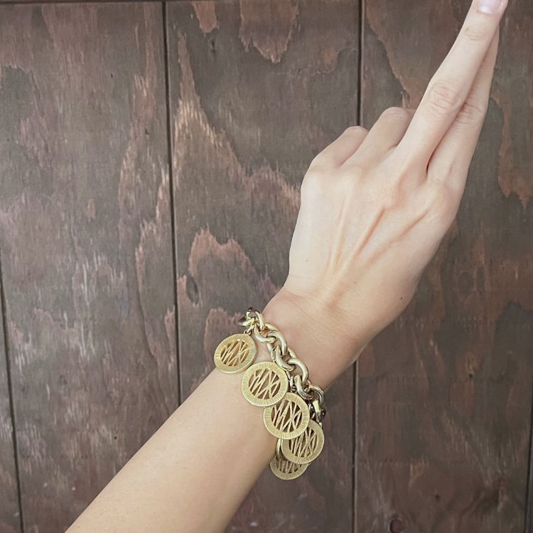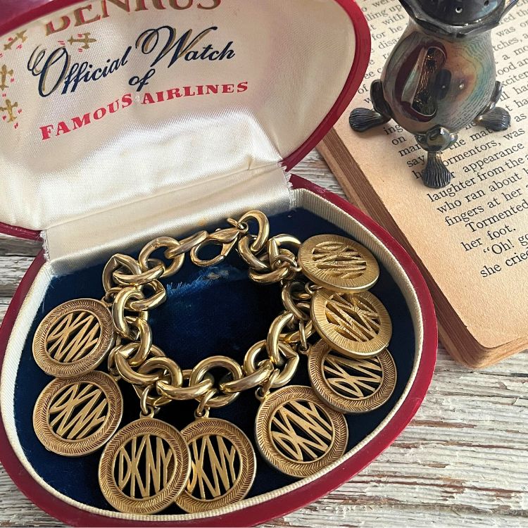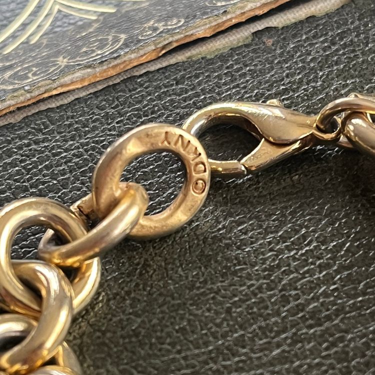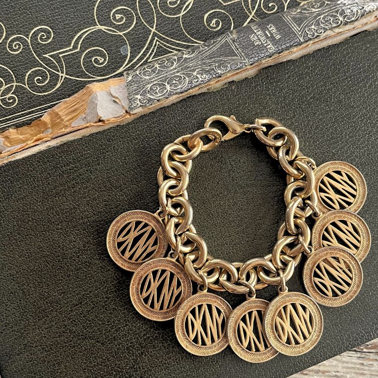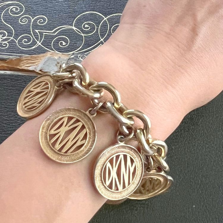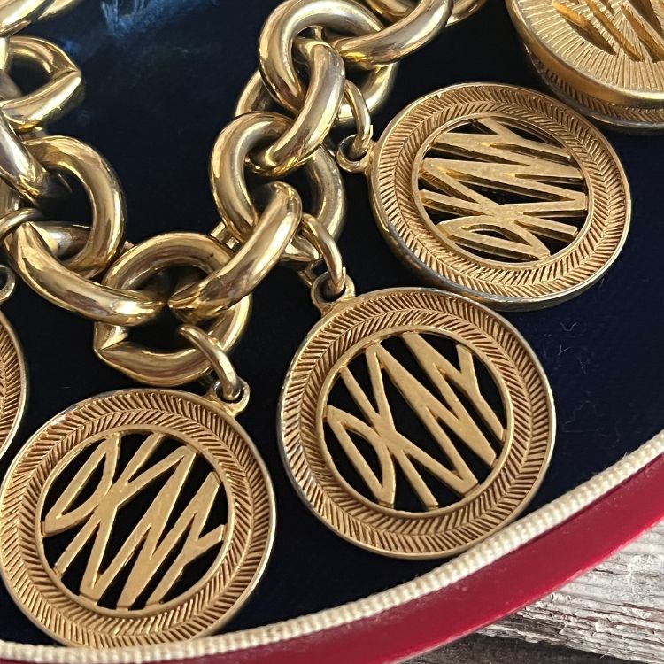 DKNYの透かしロゴメダルが連なったチャームブレスで、ヴィンテージでしか出会えない廃盤のシリーズです。