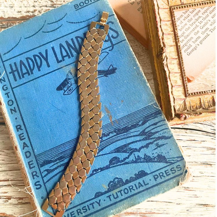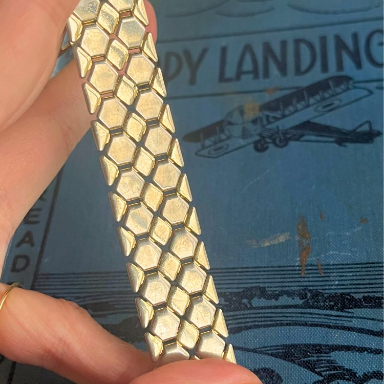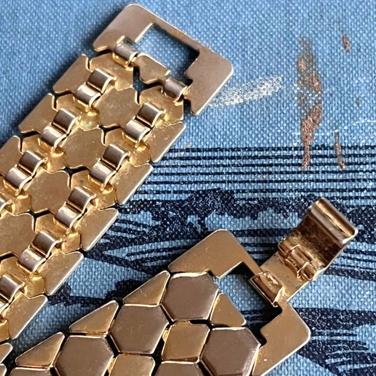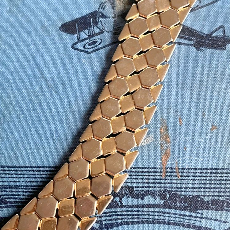 【ブレス】ヘキサゴン 六角形 蜂の巣 ハニカム ゴールド 60’sフランス