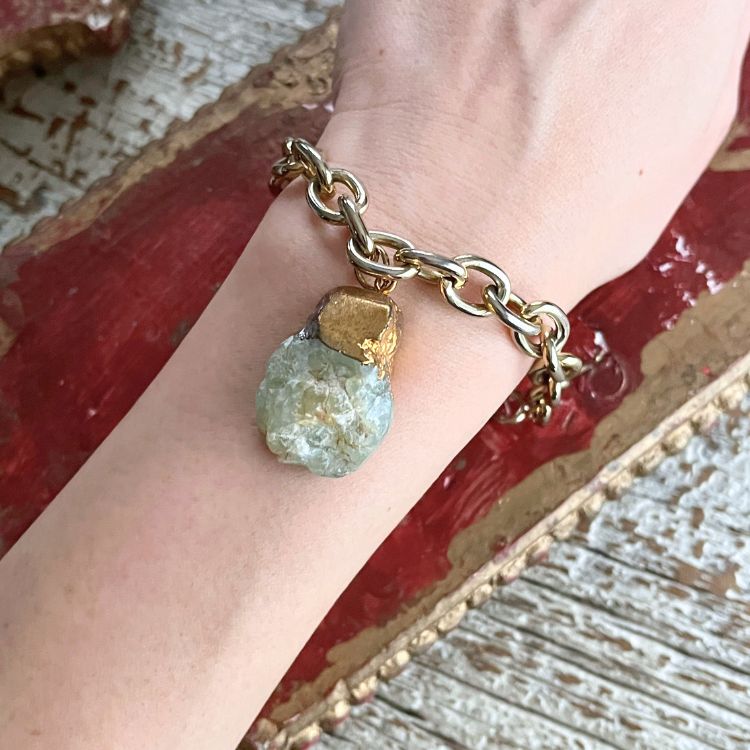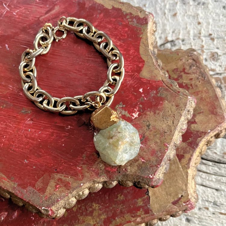 【ブレス】翡翠 チェーン 原石 ゴールドチェーン 80’s USA