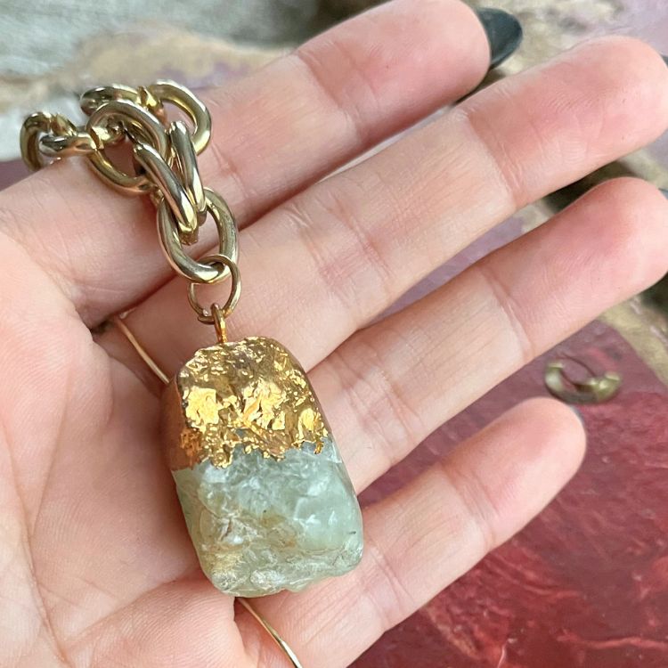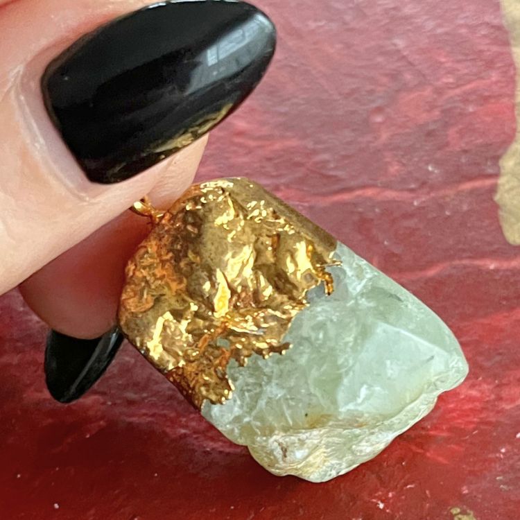 このラフカットされた淡いグリーンの原石は、無骨でありながらもどこか神秘的でパワーが宿っていそうな迫力満点のお品です。