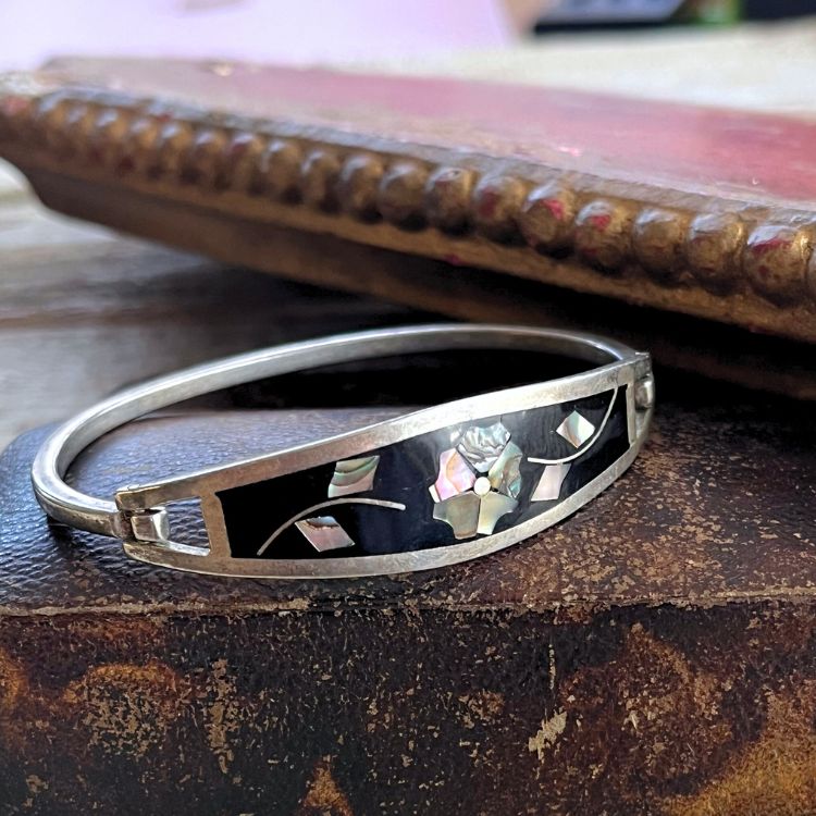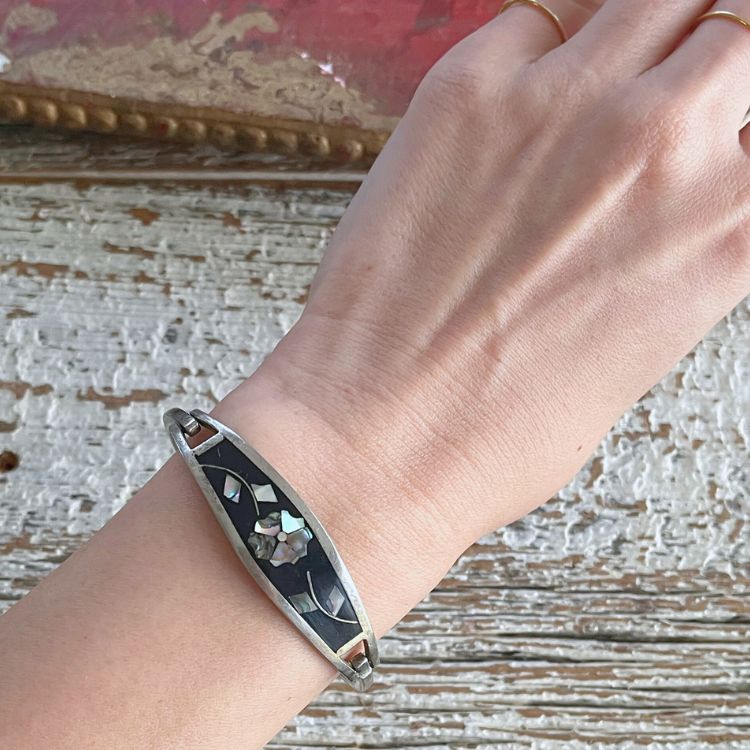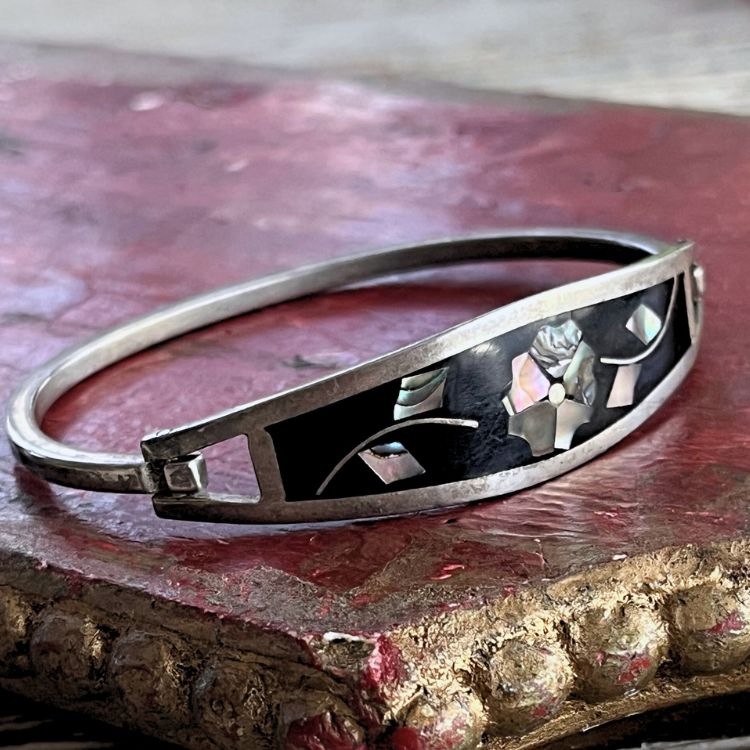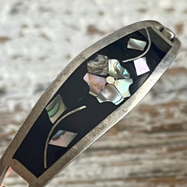 【バングル】ALPACA社 メキシコ 螺鈿細工 シェル silver 70'sメキシコ