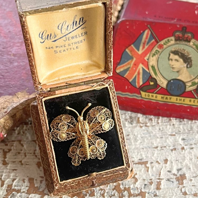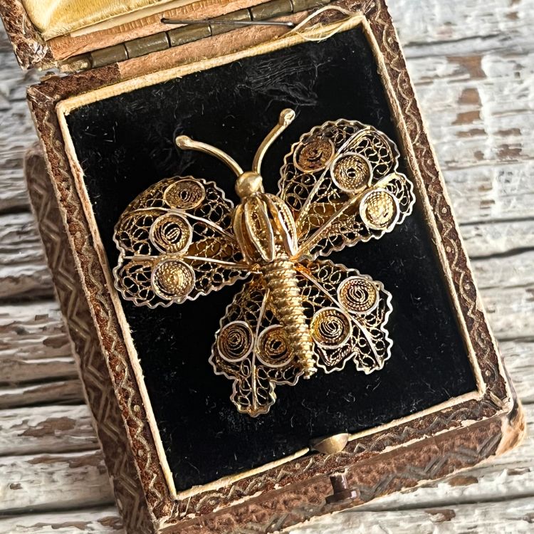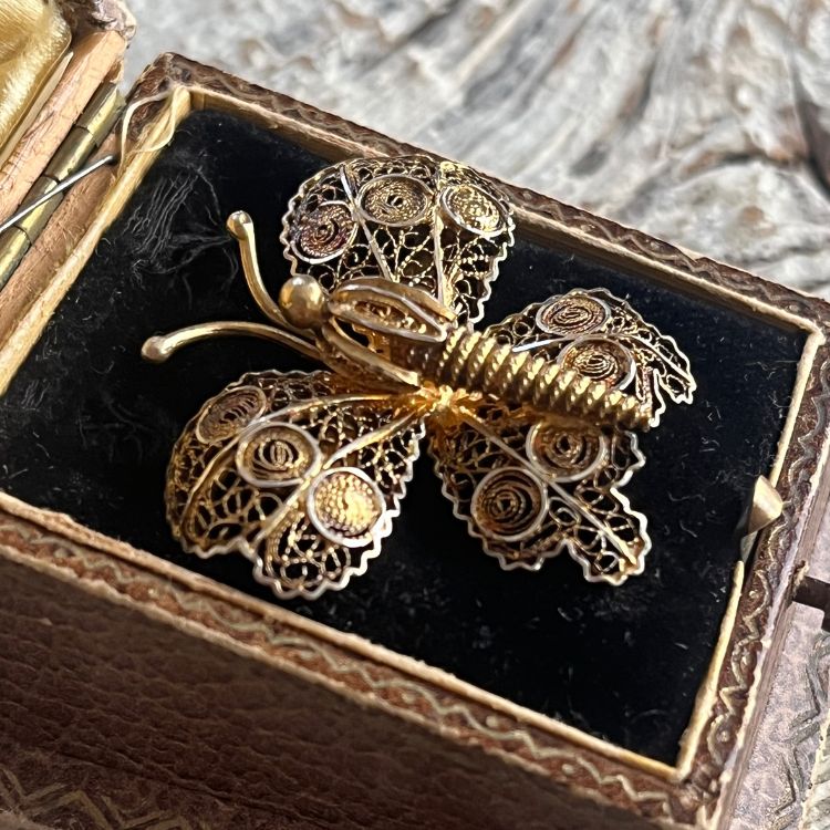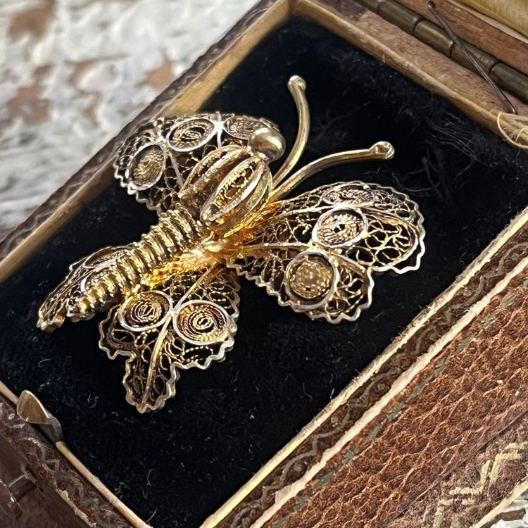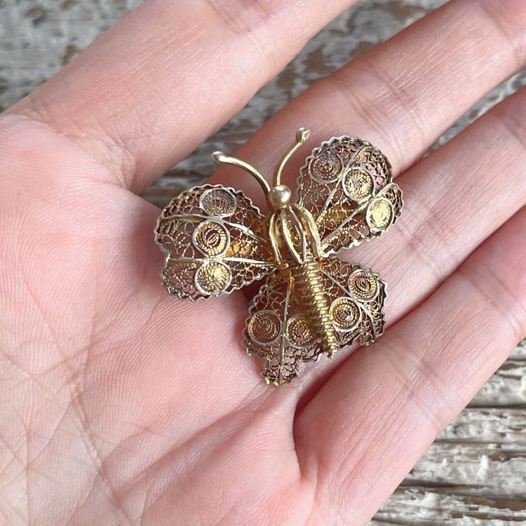 【ブローチ】フィリグリー バタフライ 蝶 50’sイギリス