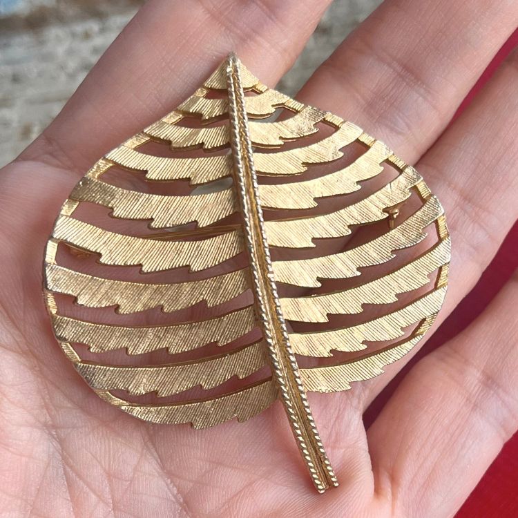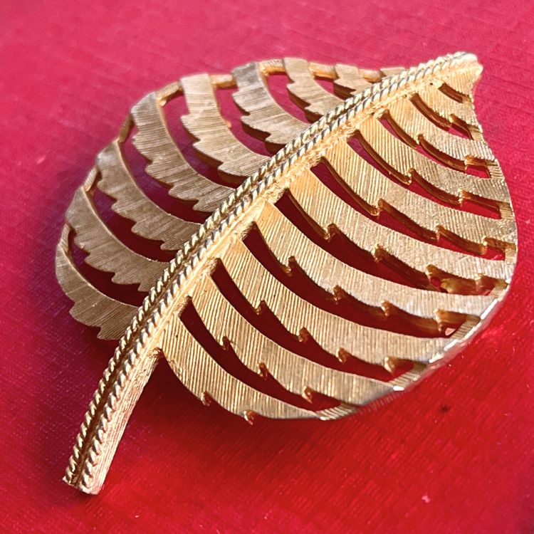 こちらはTrifariなどでも見られる高級感あふれるマットなテクスチャーで仕立てられたブローチになります。