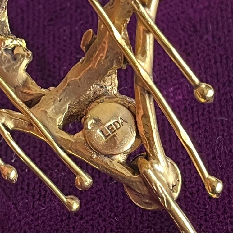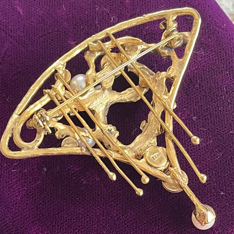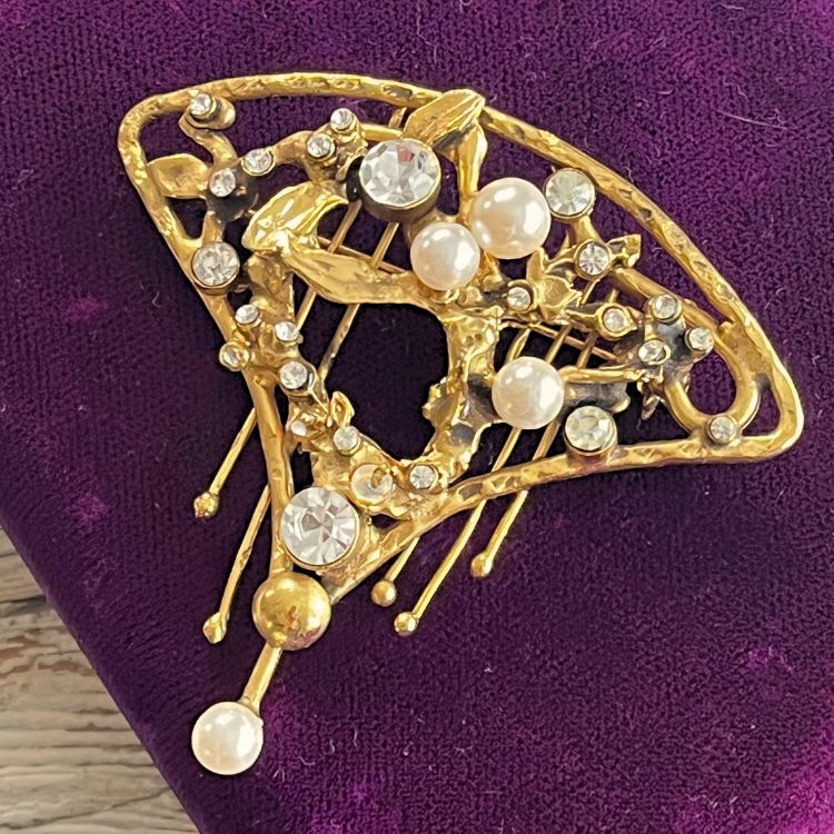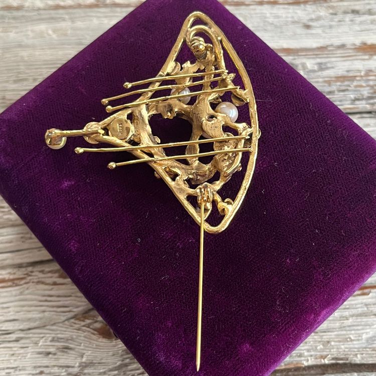 【ブローチ】LEDA 雨雫 アールデコ 芸術 art 扇形 パール 個性的 70'sUSA