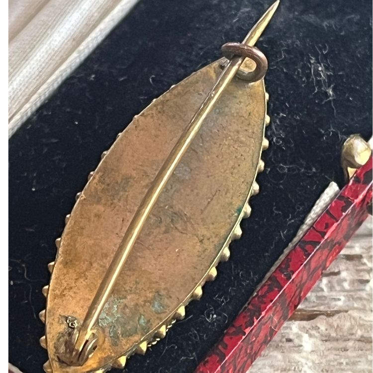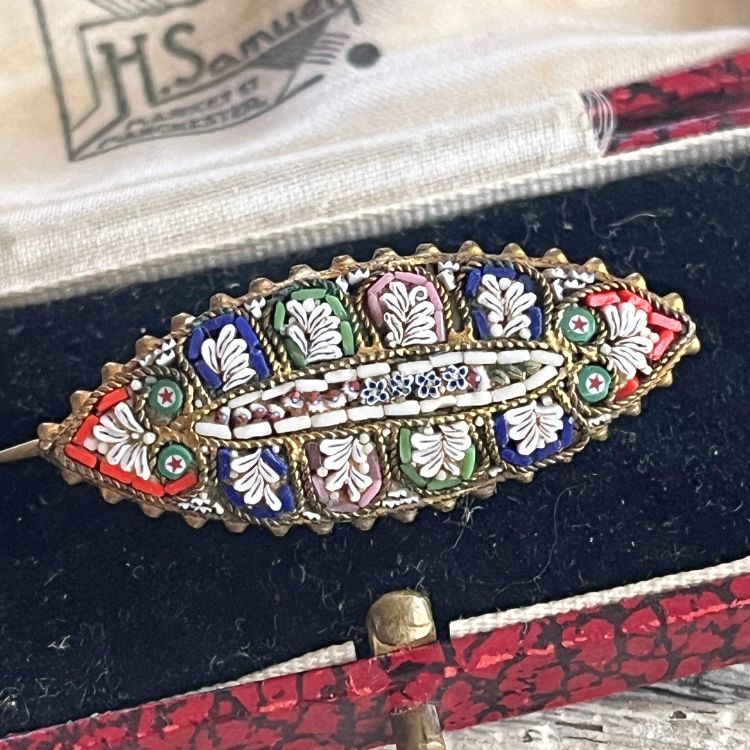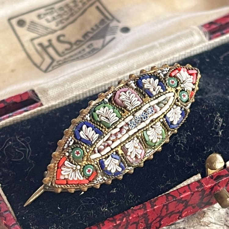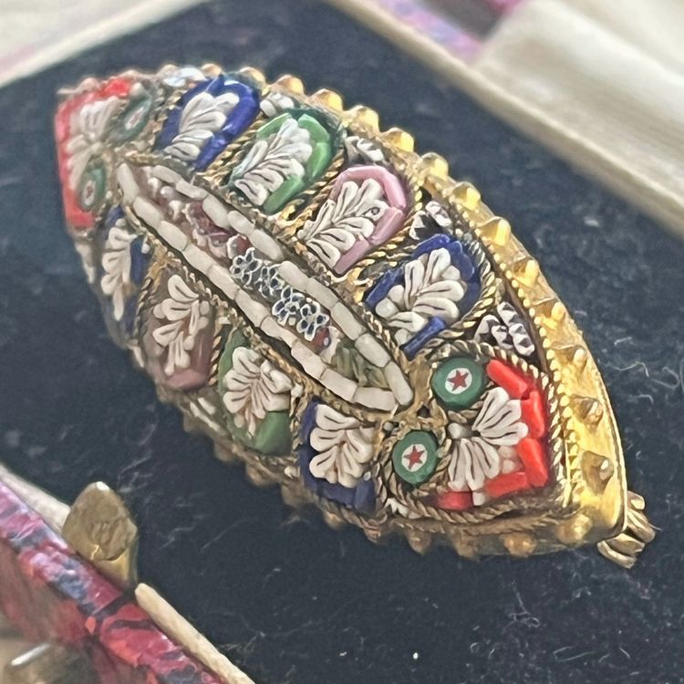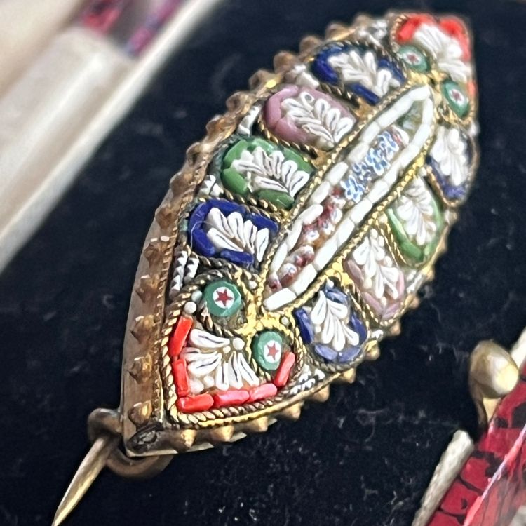 【ブローチ】マイクロモザイク マーキス型 オリエンタル 40'sイタリア