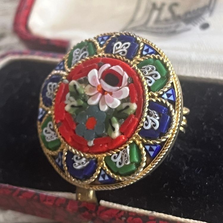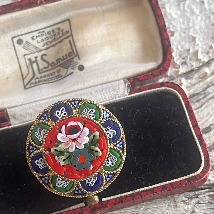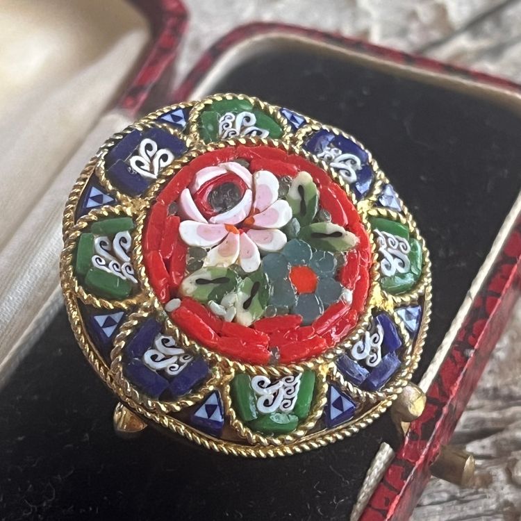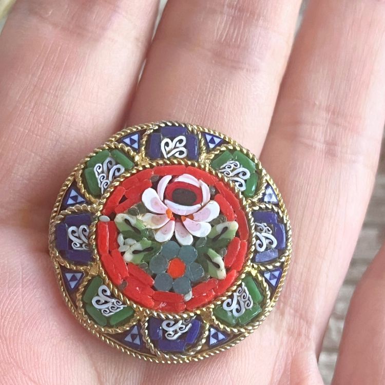【ブローチ】マイクロモザイク 薔薇 ローズ 50’sイタリア