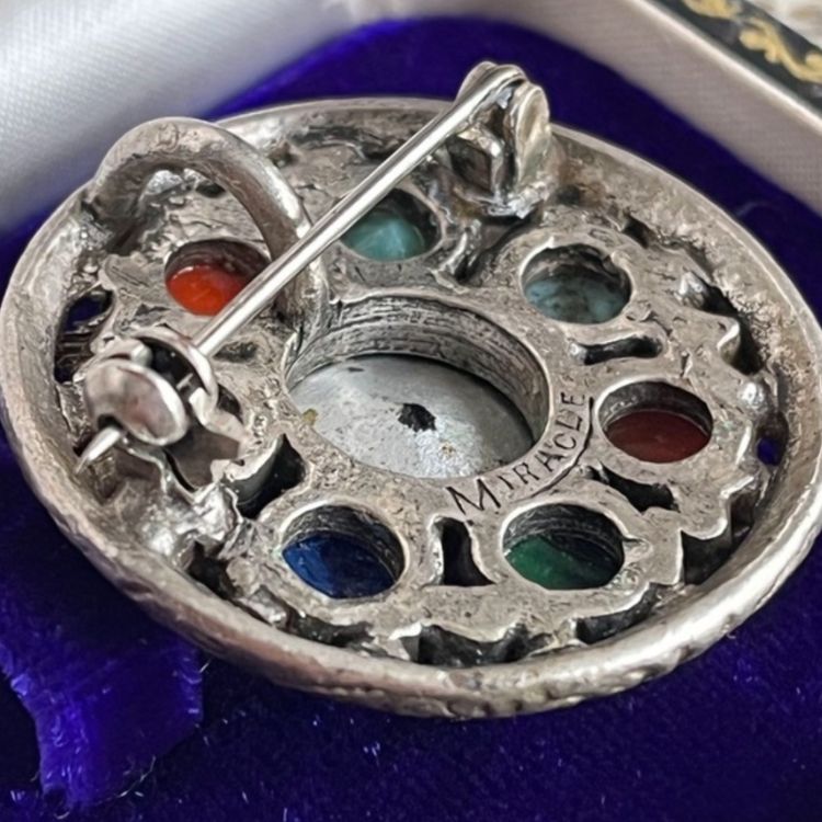 【ブローチ】MIRACLE ミラクル社 7つの石 オリエンタル 70’sイギリス