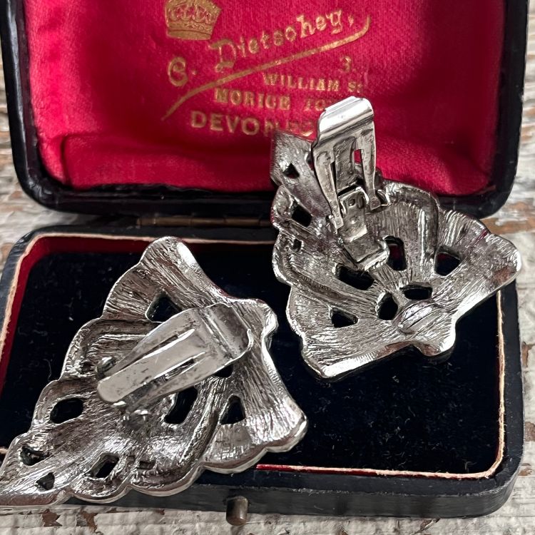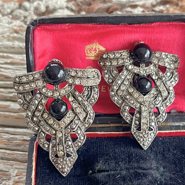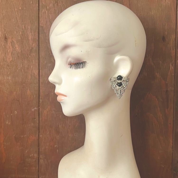 【イヤリング】逆トライアングル アールデコ ブラック 40’sフランス