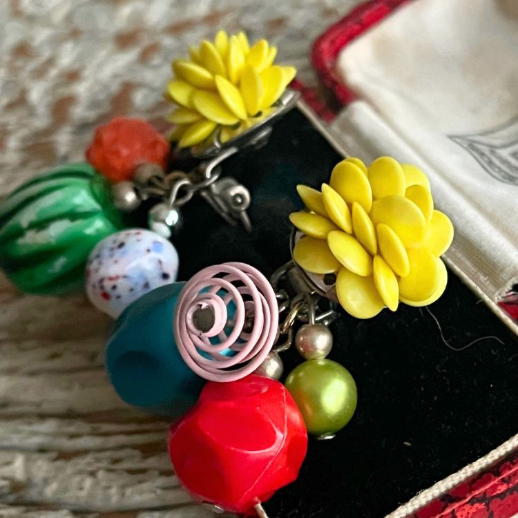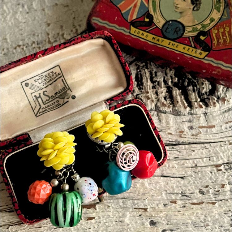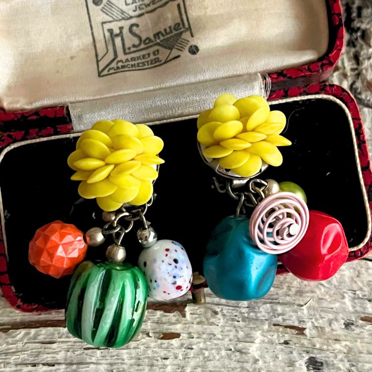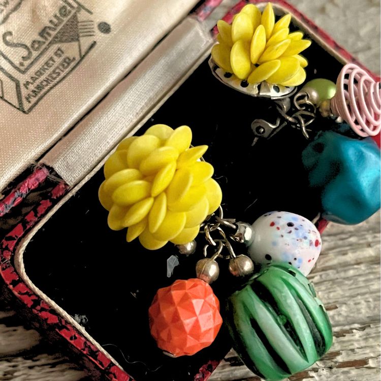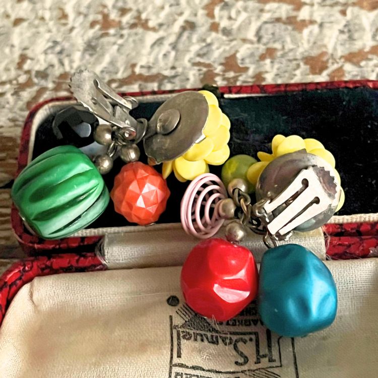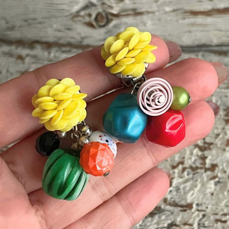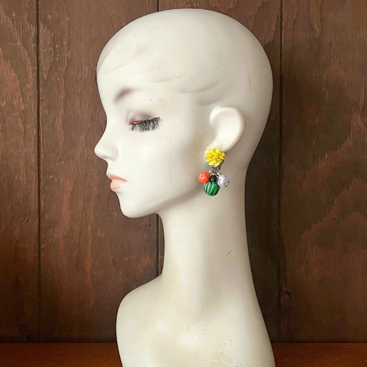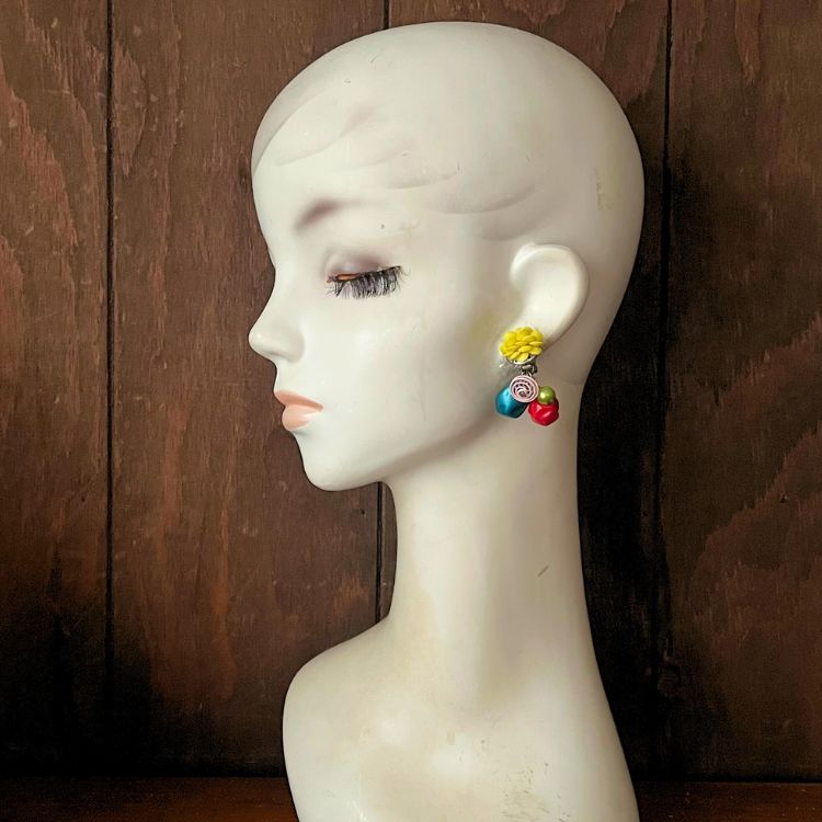 【イヤリング】カラフル キッチュ コラージュ アシンメトリー 60’sフランス
