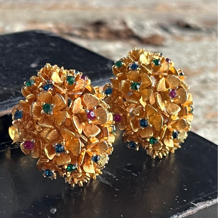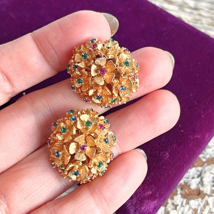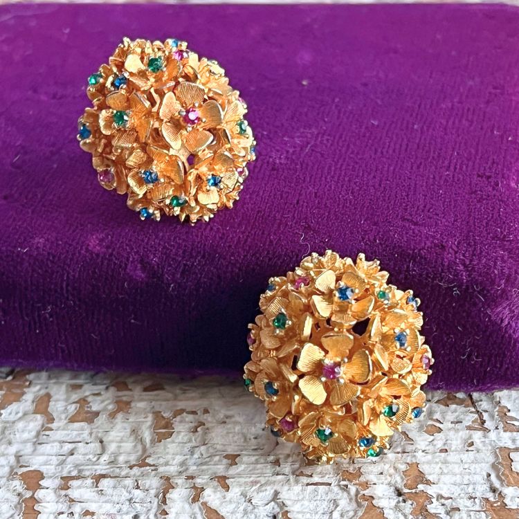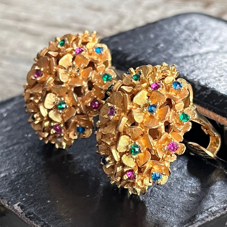 【イヤリング】ブーケ 花 カラービジュ 80'sフランス