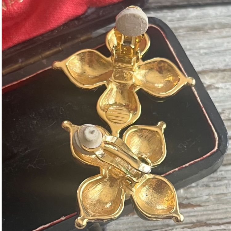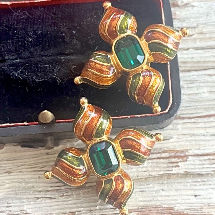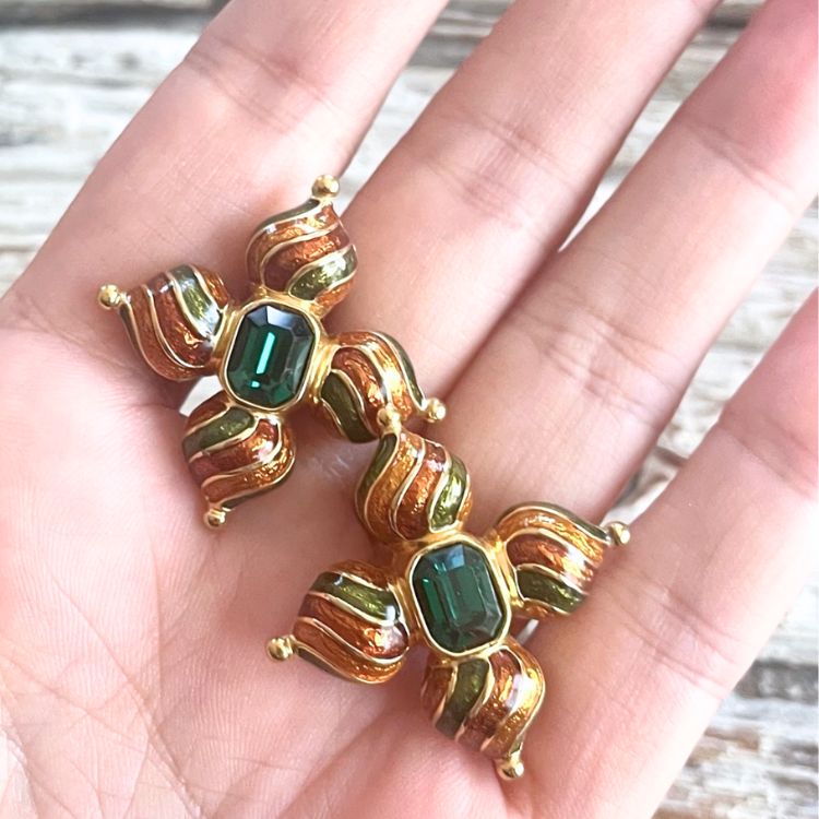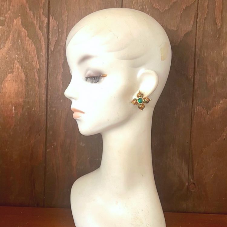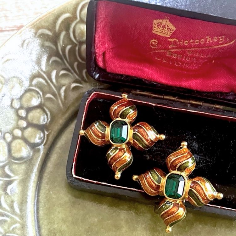 【イヤリング】エメラルド オリエンタル クロス シック 70’sイタリア