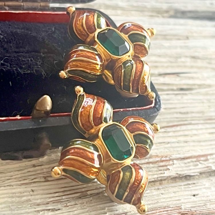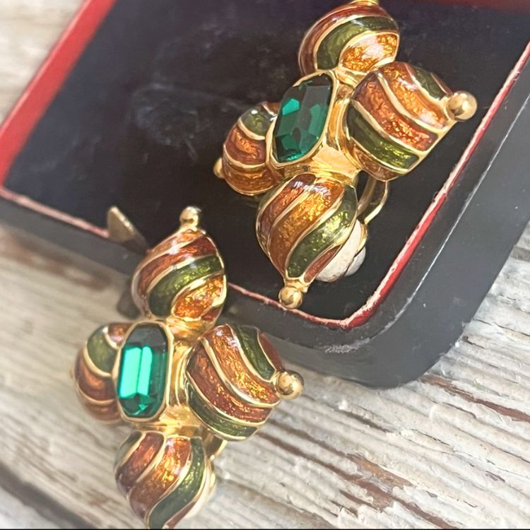 独特のエキゾチックな配色と、発色の良いエナメル素材が、高級感あるイヤリングになります。