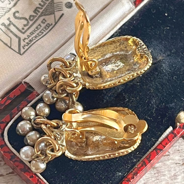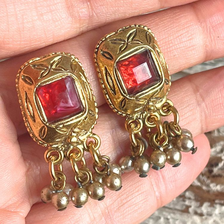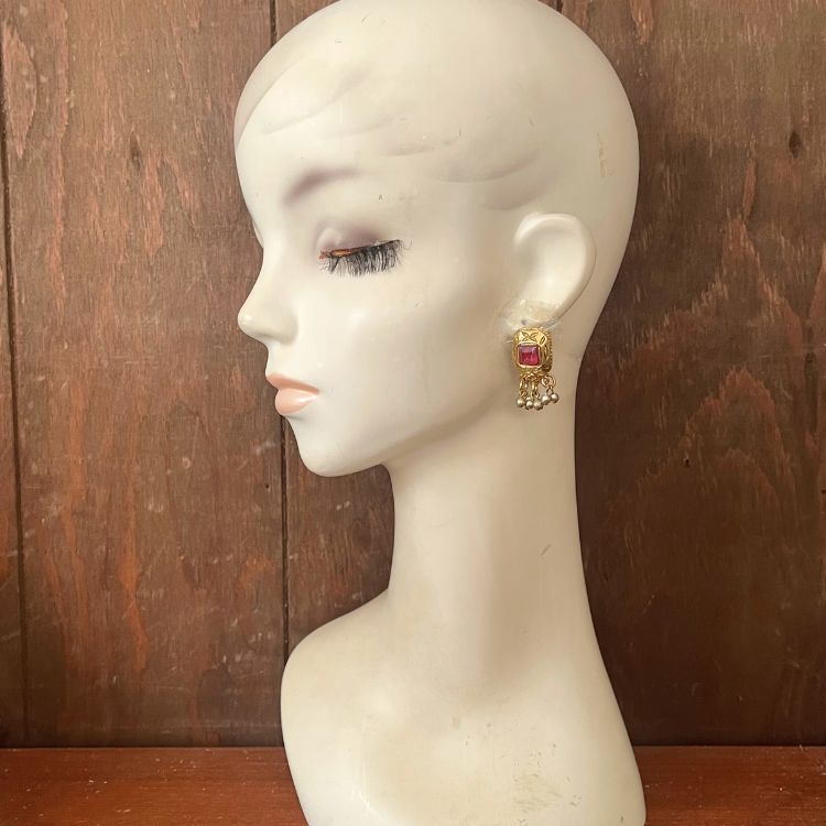 【イヤリング】エジプティアン 赤 レッド パール グリポア 70’sUSA