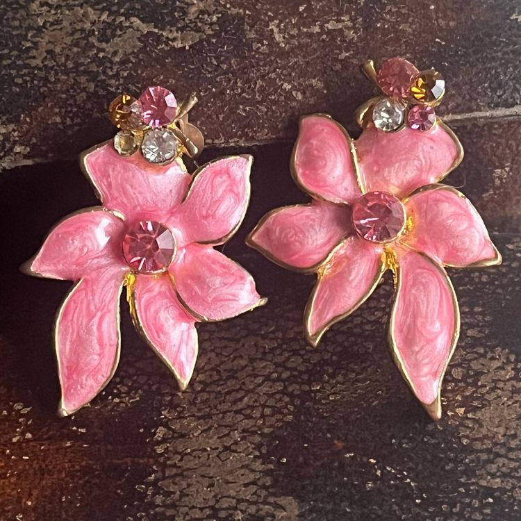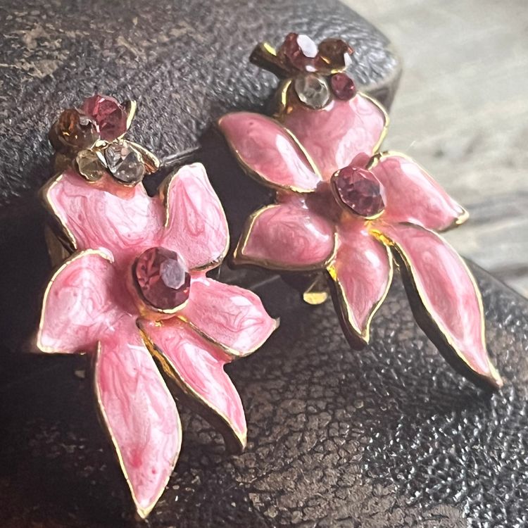 【イヤリング】花 フラワー ピンク 春色 春ジュエリー 80’s USA