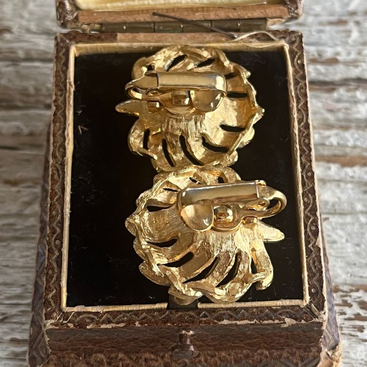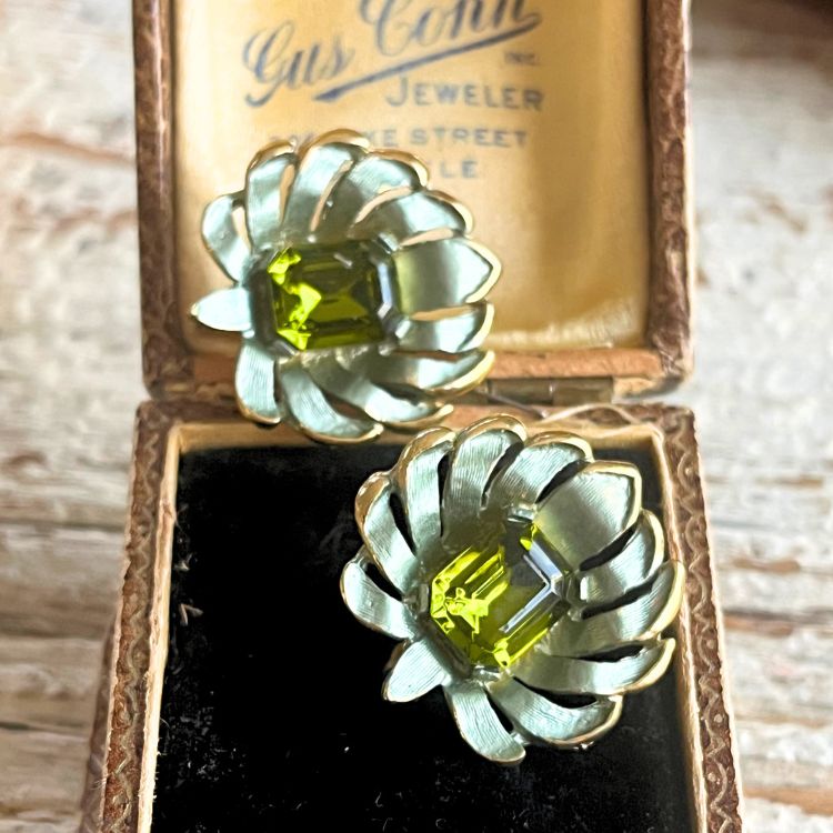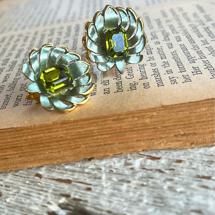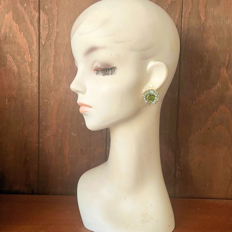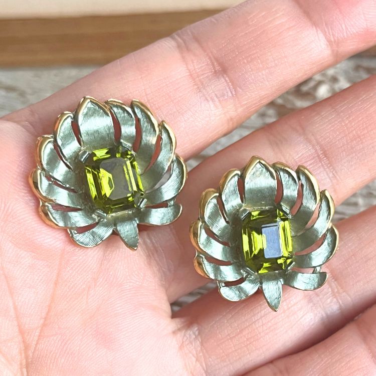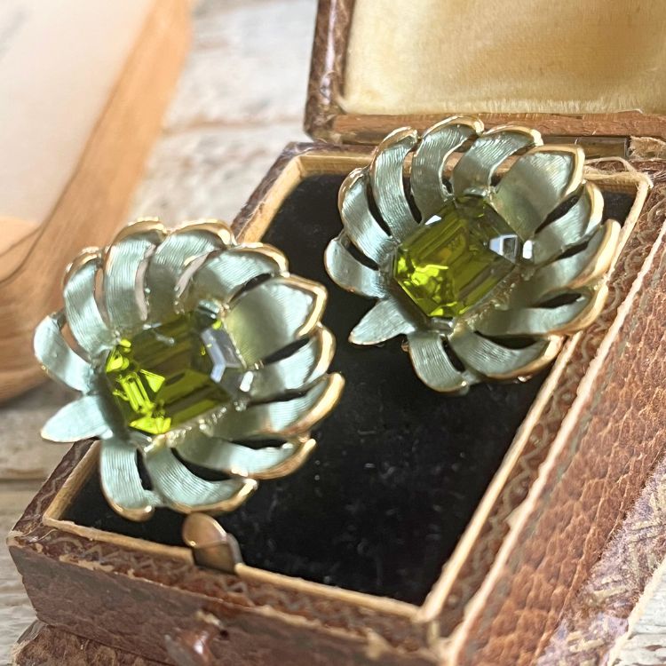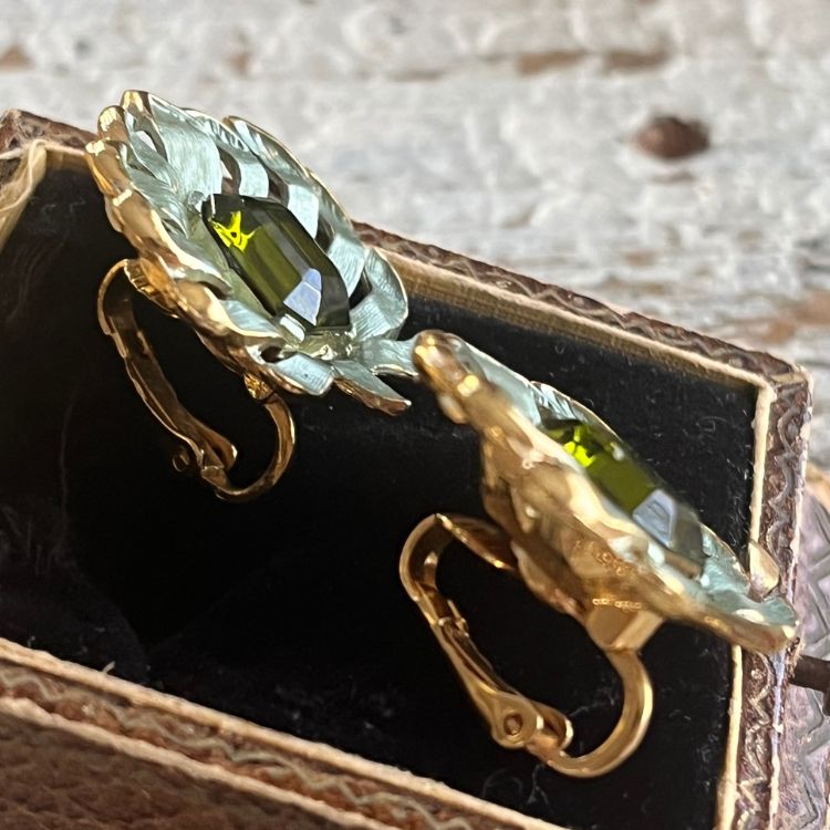 【イヤリング】モスグリーン ボタニカル 70’sフランス