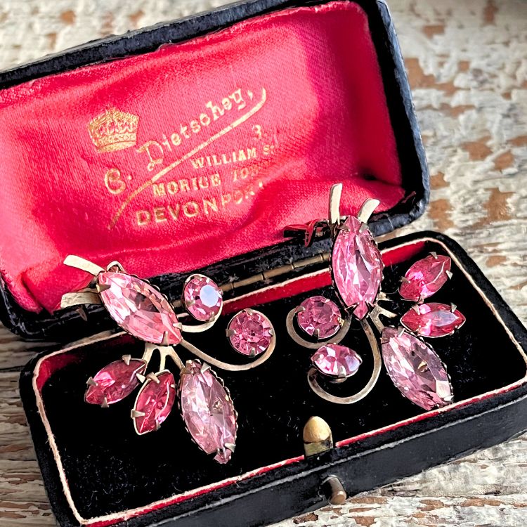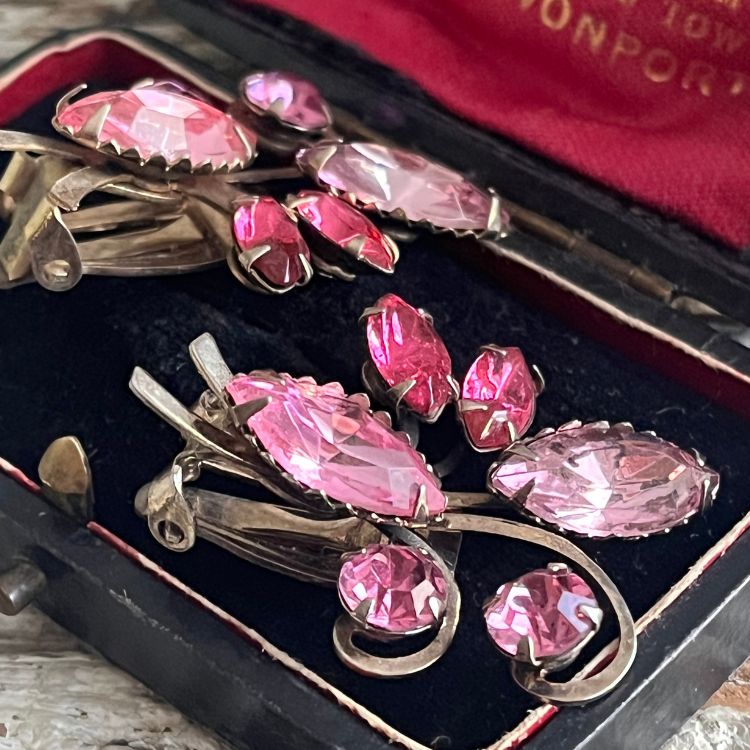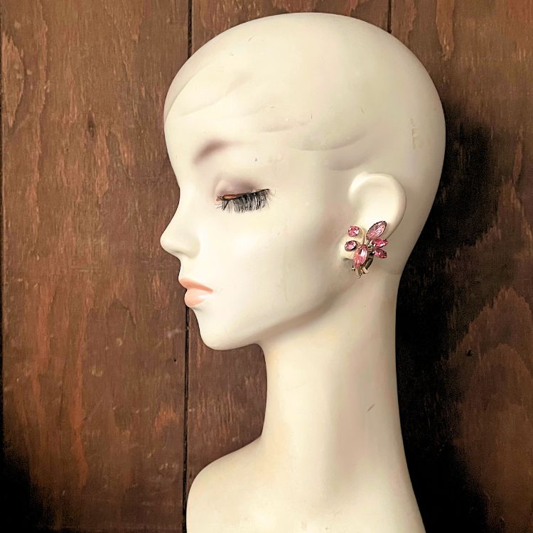 【イヤリング】ピンク 芸術的 造形美 マーキス 50’sイギリス