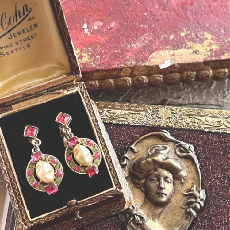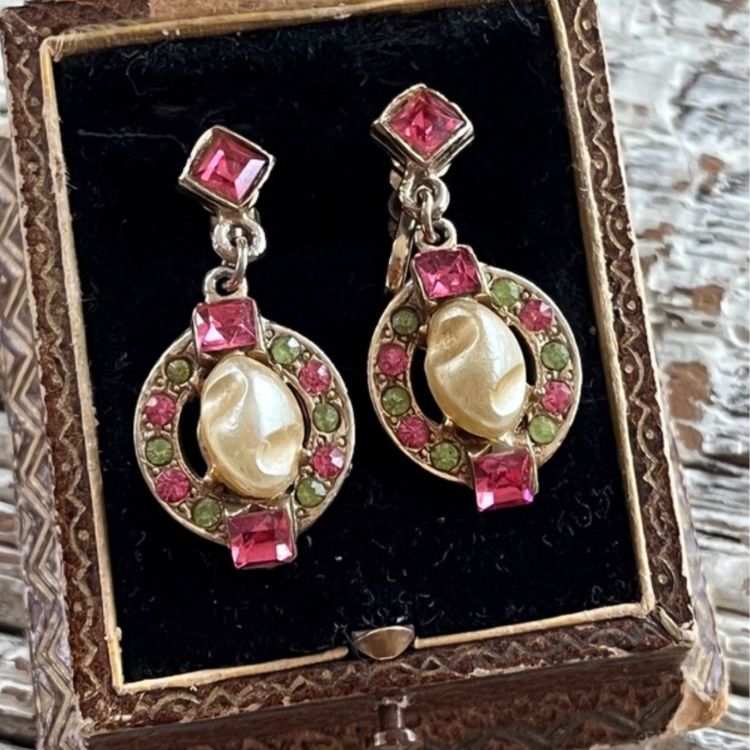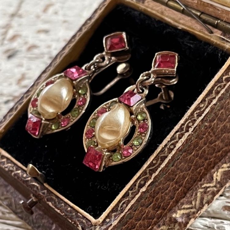 【イヤリング】バロックパール ピンクグリーン ロマンチック 50’sイギリスvintage