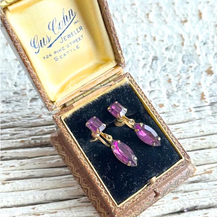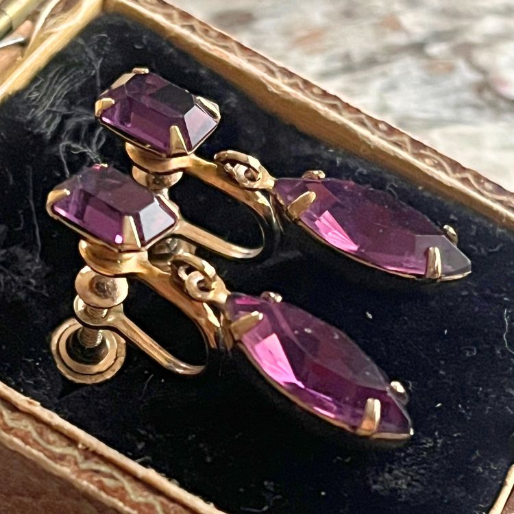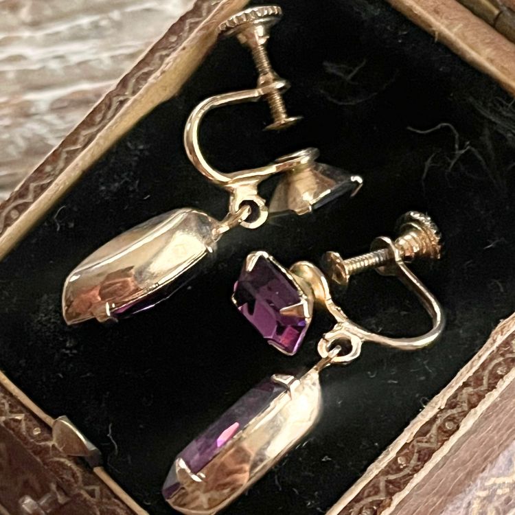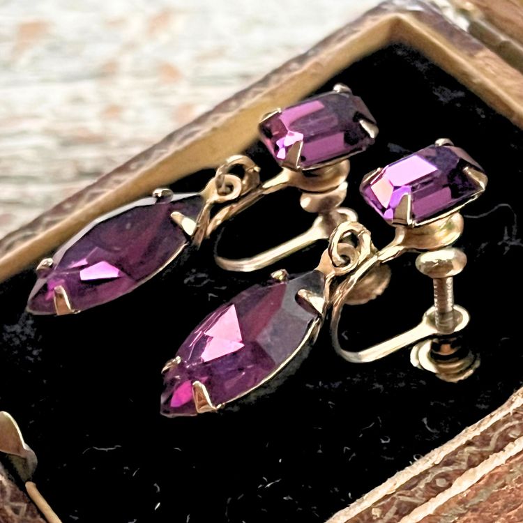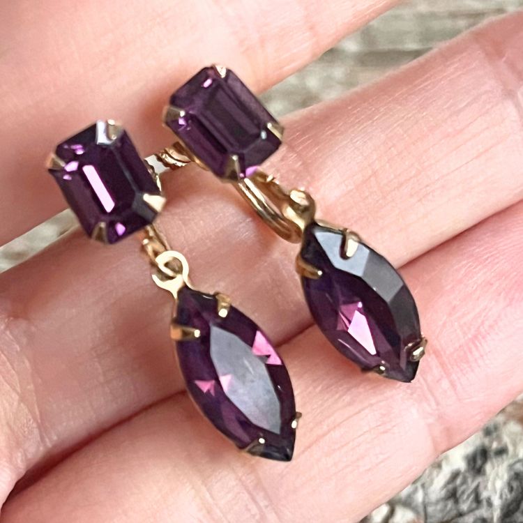 【イヤリング】WEISS パープル クリスタル スイング ミニ 60’sUSA