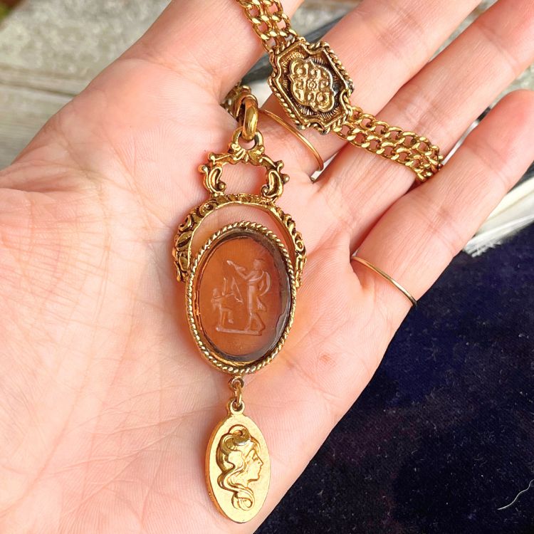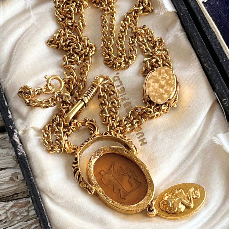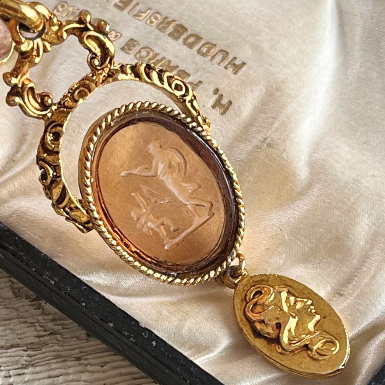 ガラスの下には、ゴールドのカメオプレートがスイングしています。