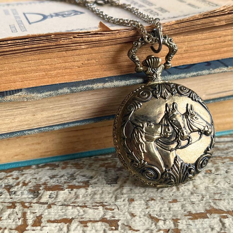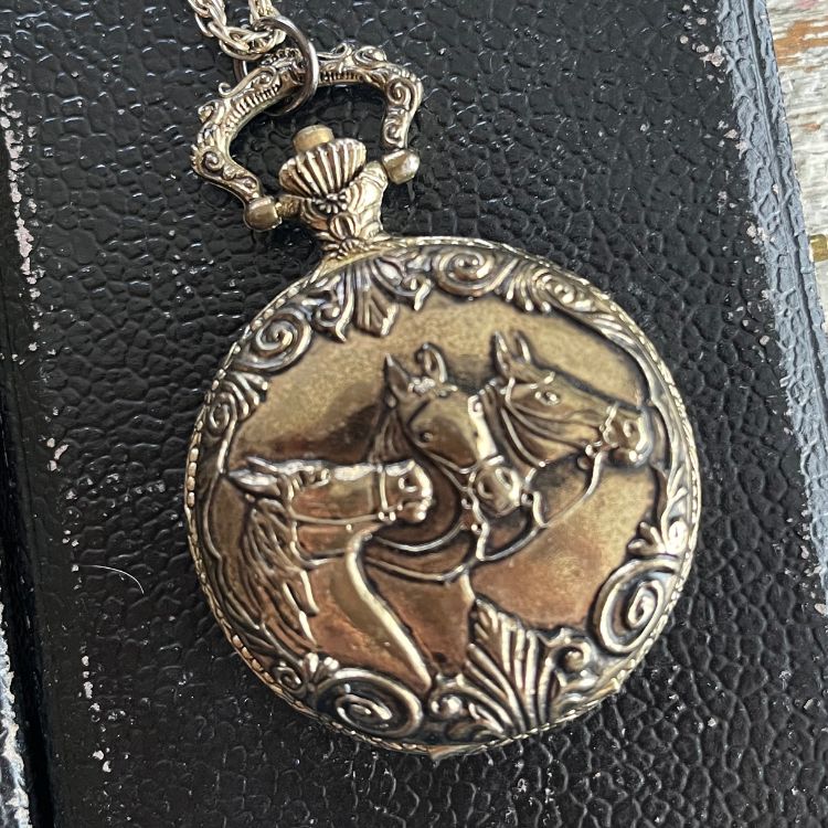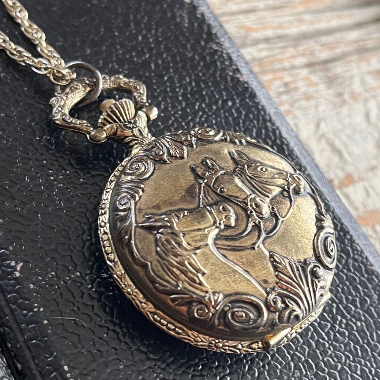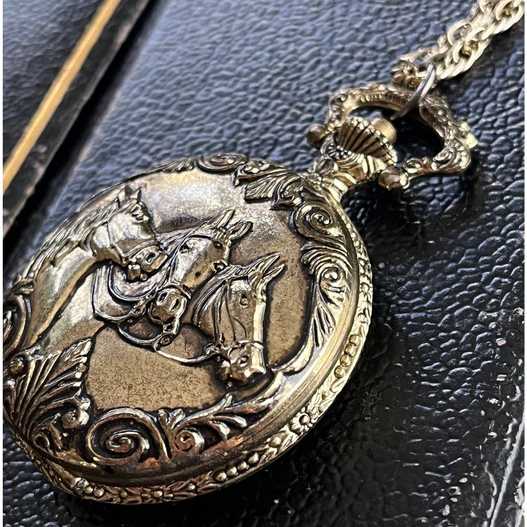 【ネックレス】懐中時計 collezio 3頭の馬 horse 80’sUSA
