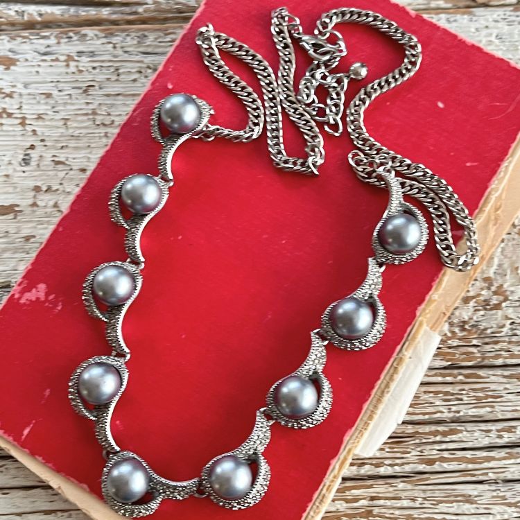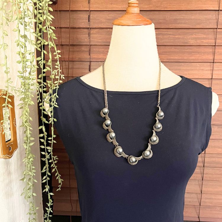 【ネックレス】ブラックパール 黒真珠 マーカサイト ロング 60’sフランス