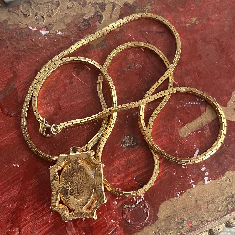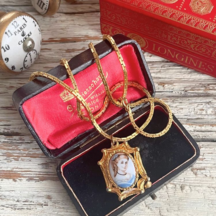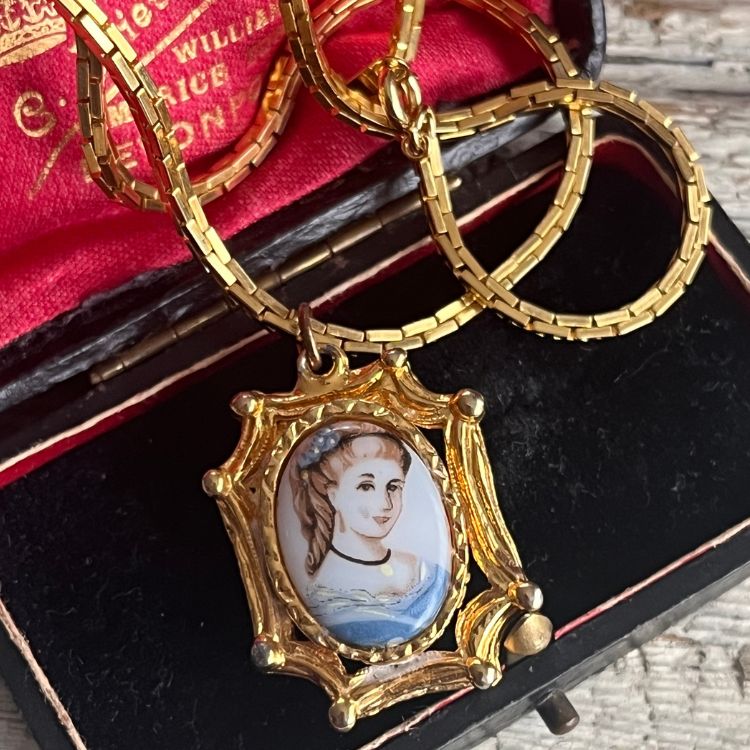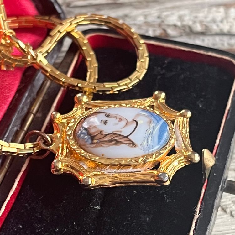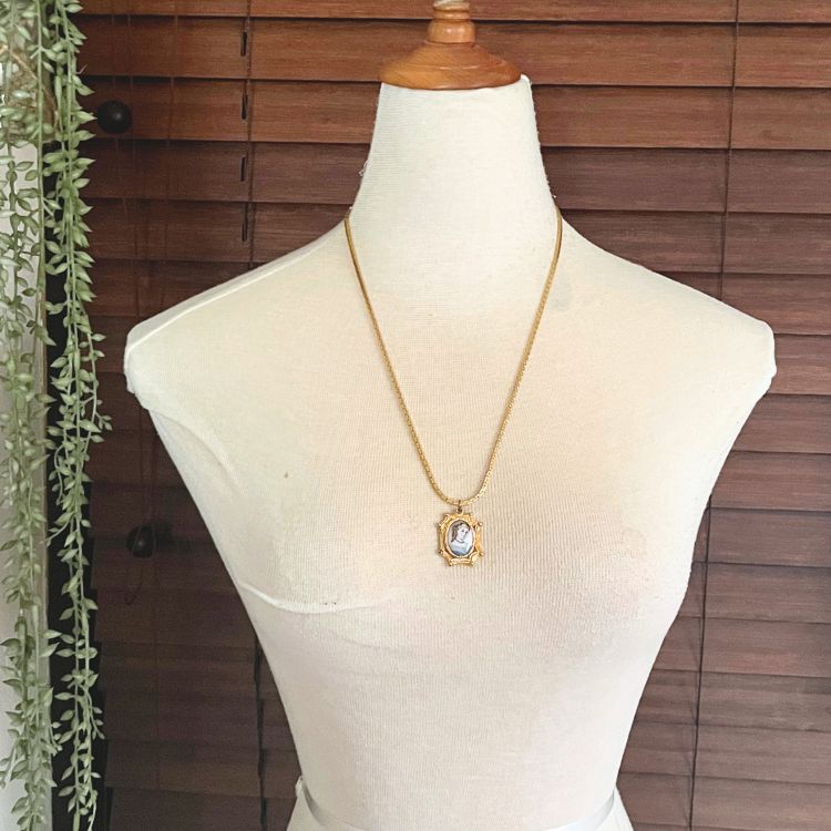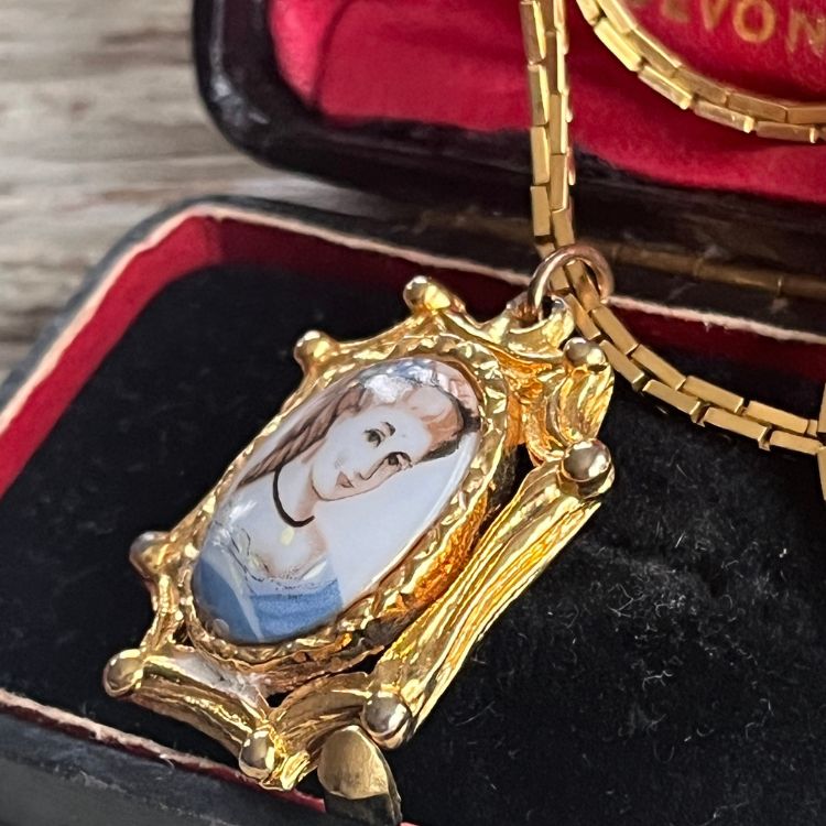 【ネックレス】ブルードレスを着た少女 絵画 アート フレーム 70’s USA