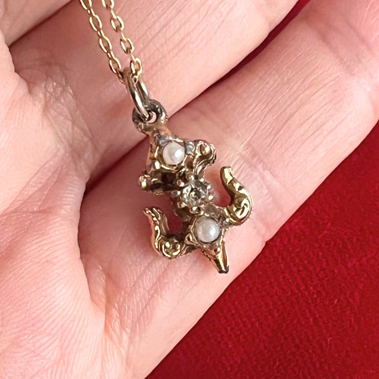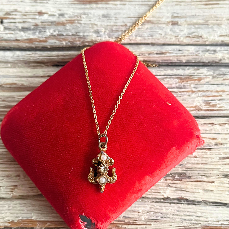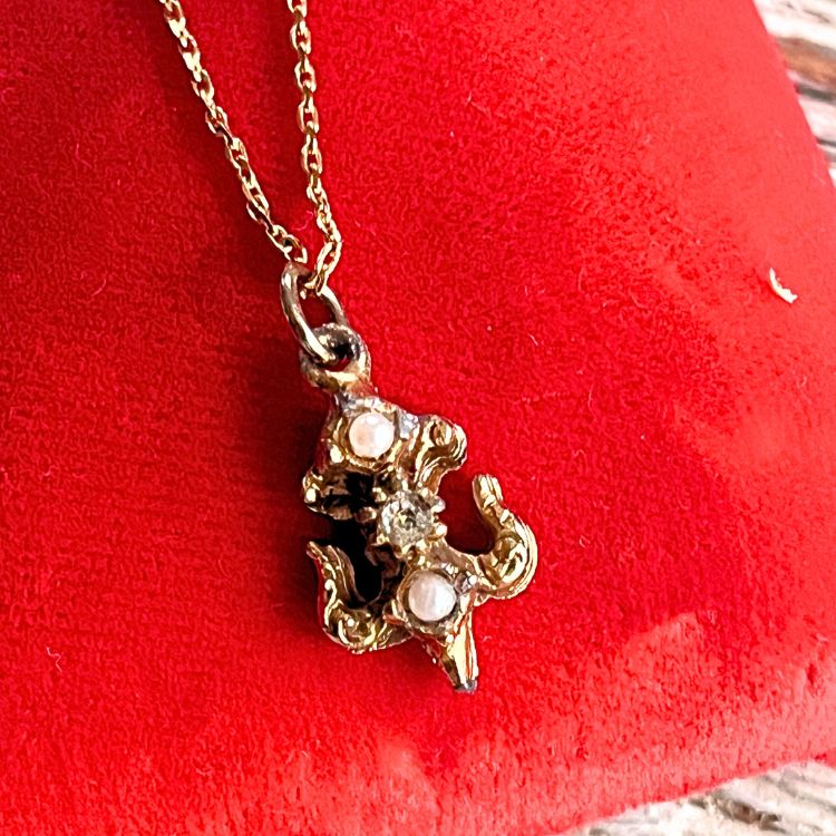 【ネックレス】紋章 パール ロングネックレス 50’sフランス
