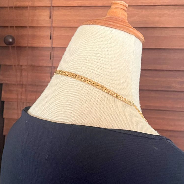 留め具を用いていませんので、そのまま頭から通してのご使用になります。