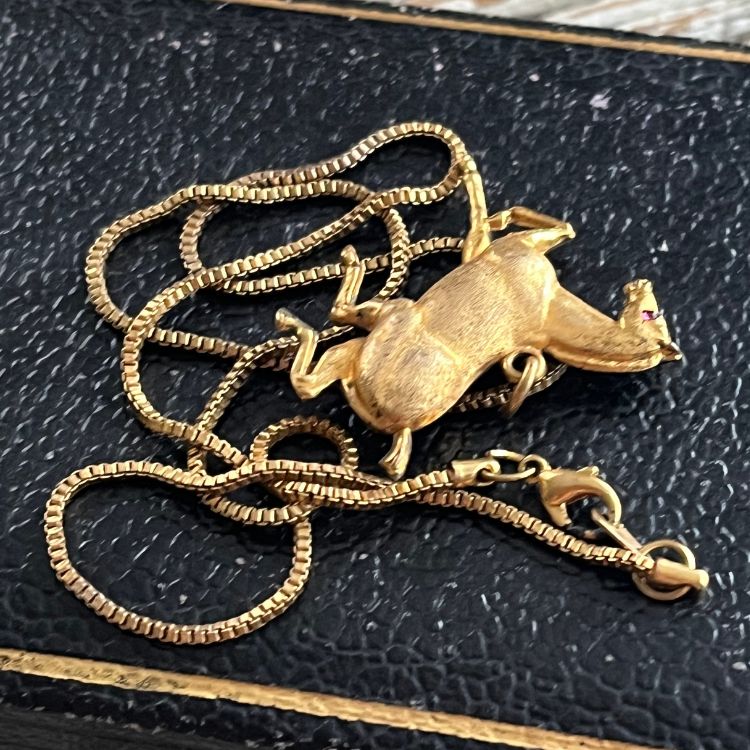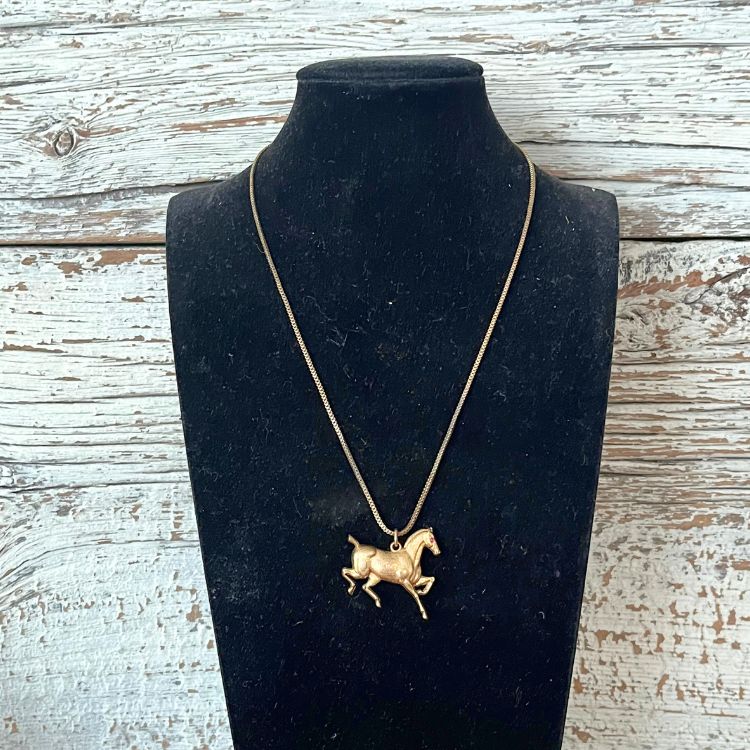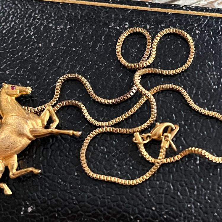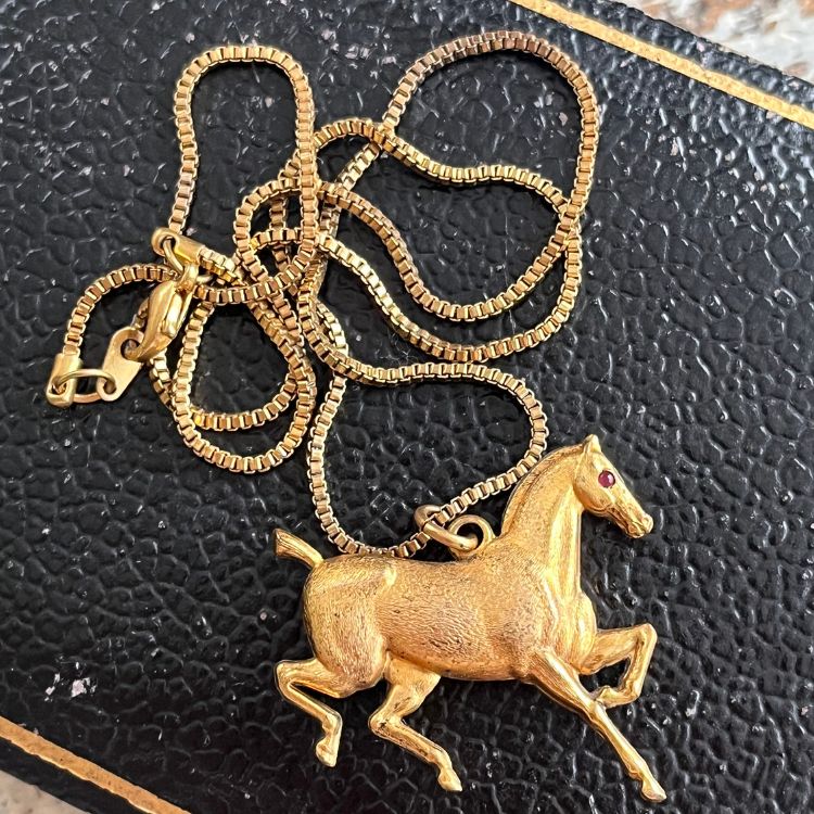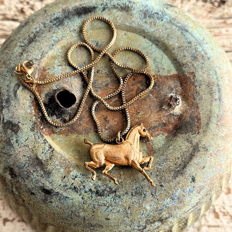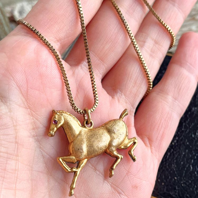 【ネックレス】馬 ホース 真鍮 駆ける馬 ルビー 70’sフランス