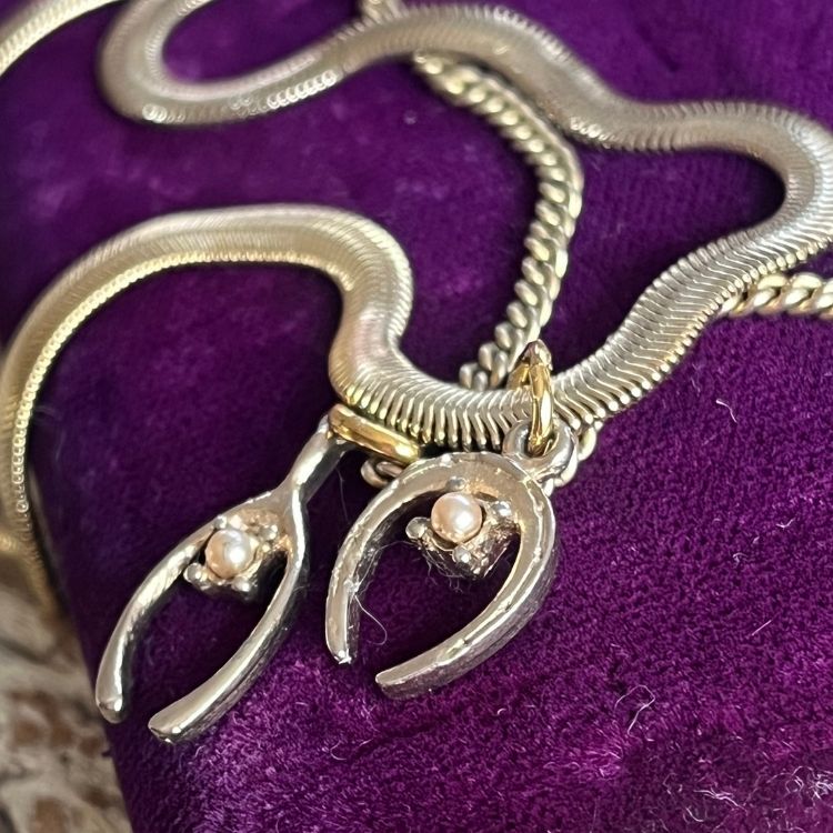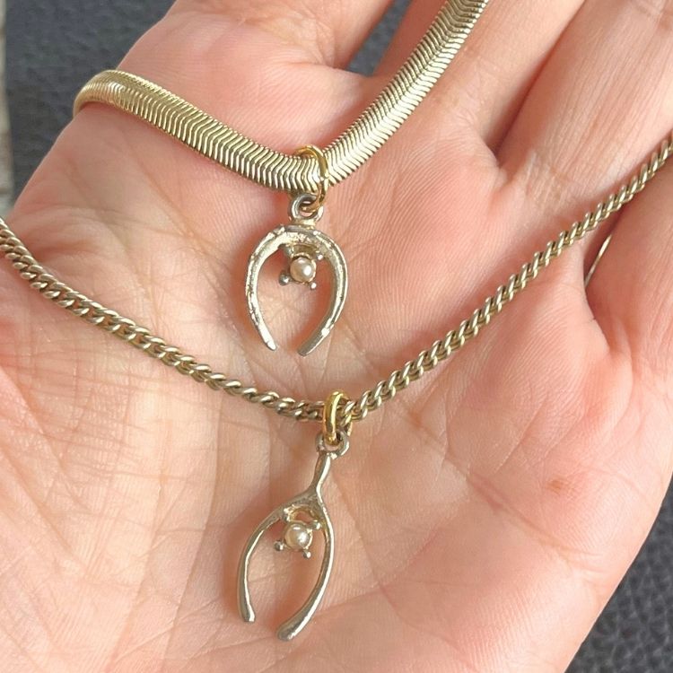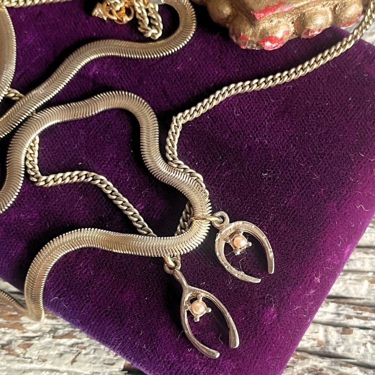 70’sフランスの馬蹄パーツを用いて2連ネックレスにしました。