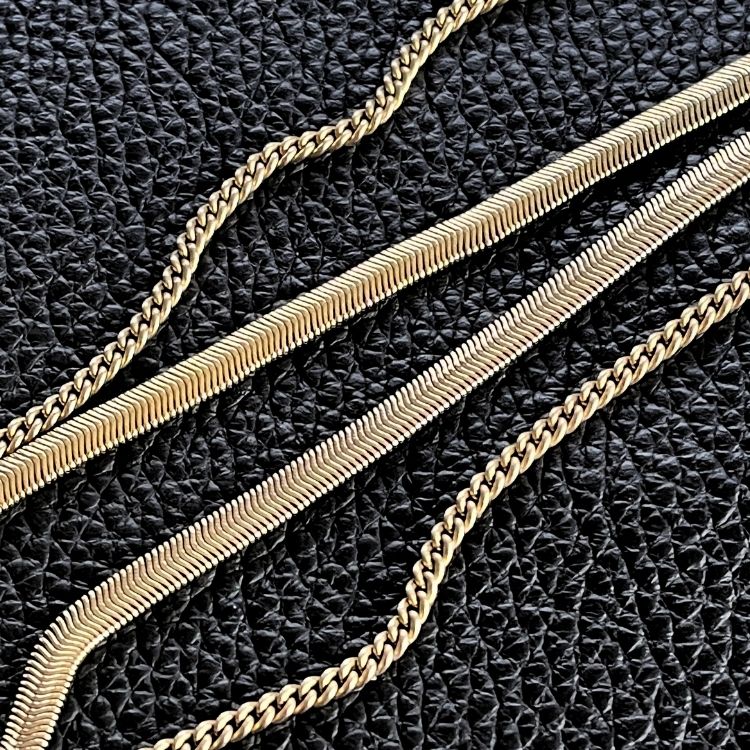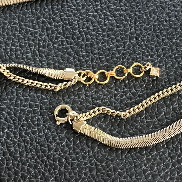 チェーンもフランスヴィンテージのストックをsetし、敢えて2本の太さや種類を変えて強弱と奥行を演出しました。