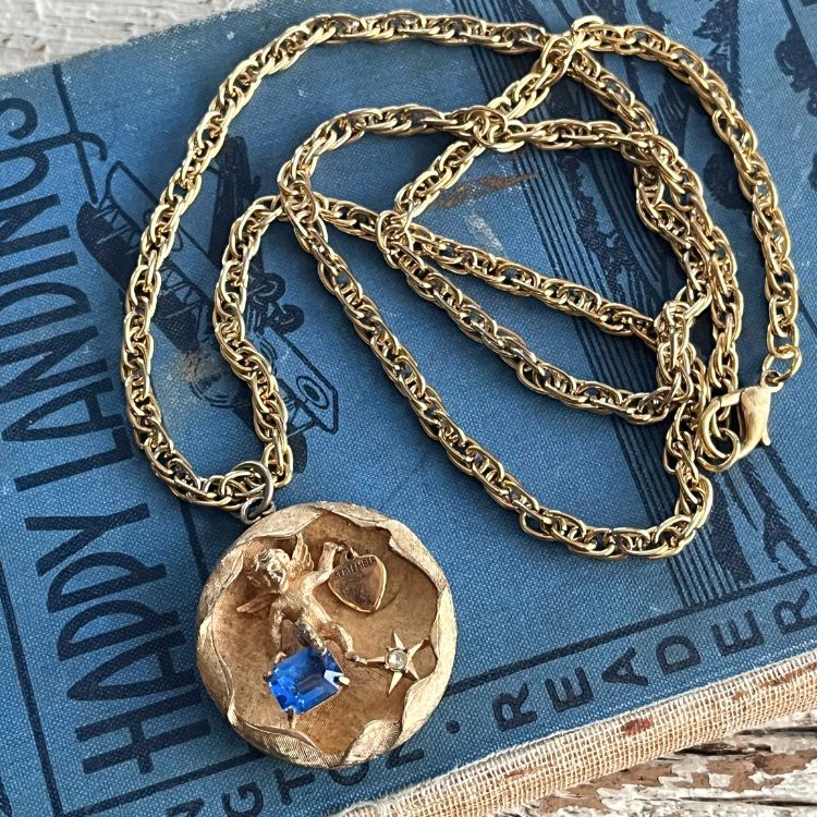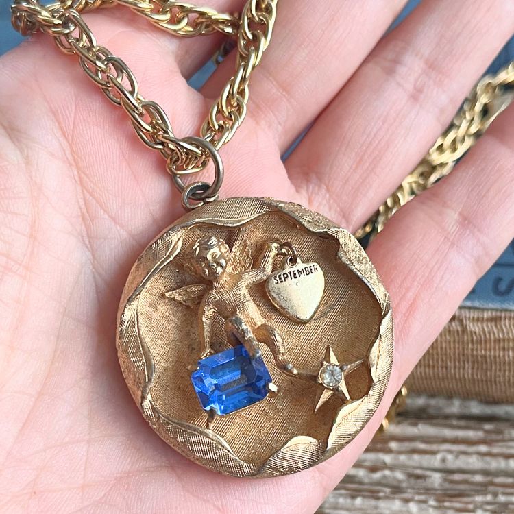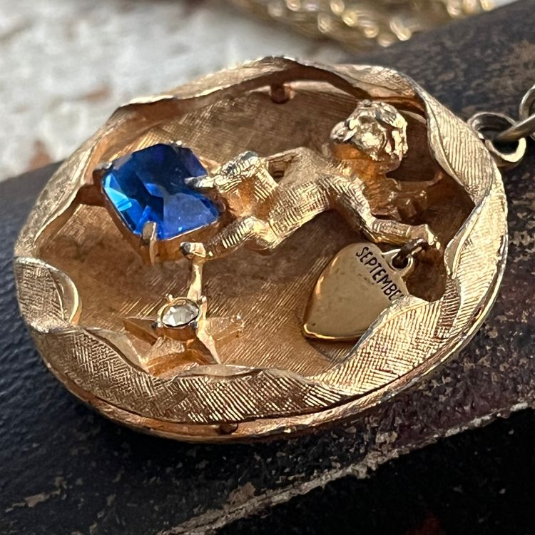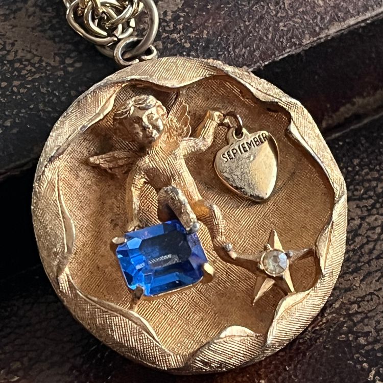 【ネックレス】エンジェル 天使 妖精 SEPTEMBER 9月 ブルー 60’s USA
