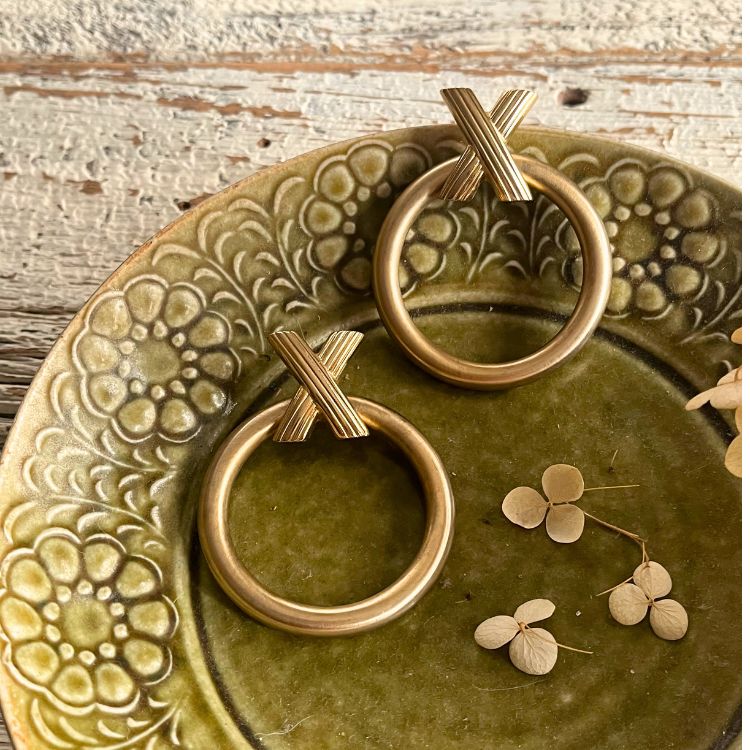 Xの下に大振りのサークルがアクセントされたピアスになります。