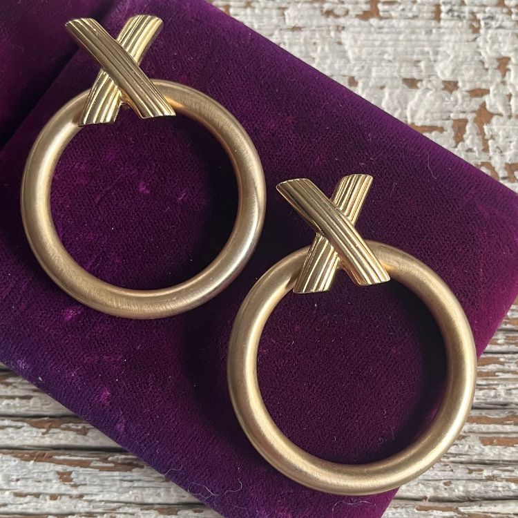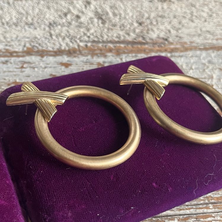 【ピアス】Xサークル!大振り マットゴールド 70’sフランス
