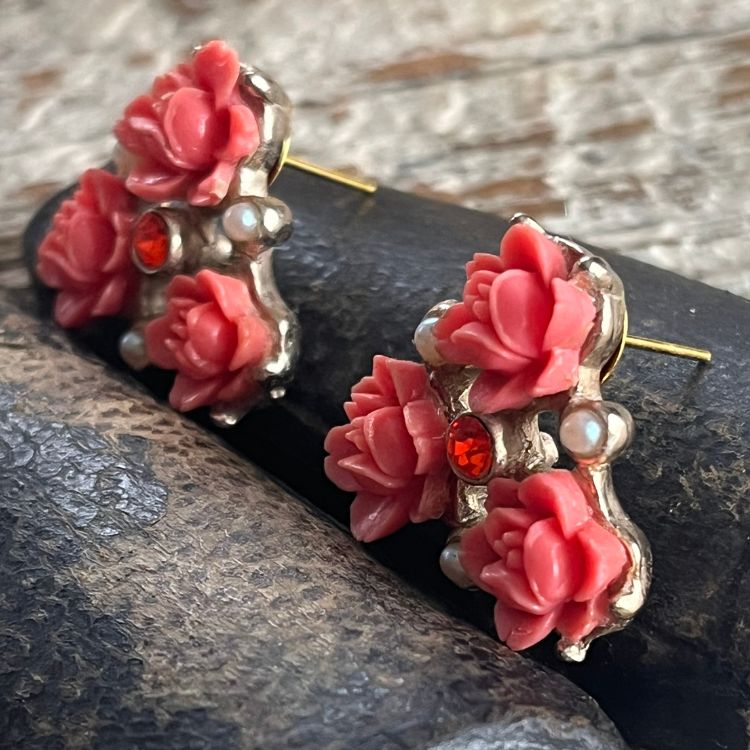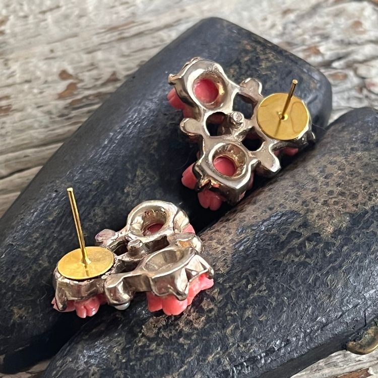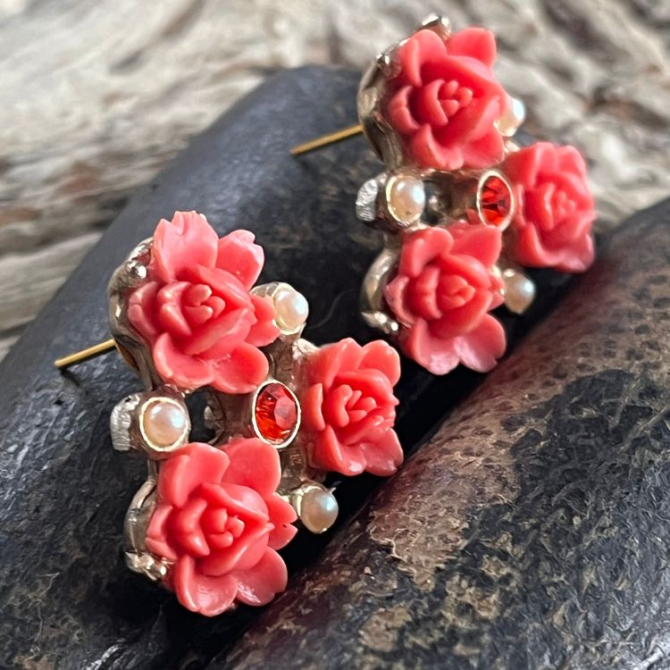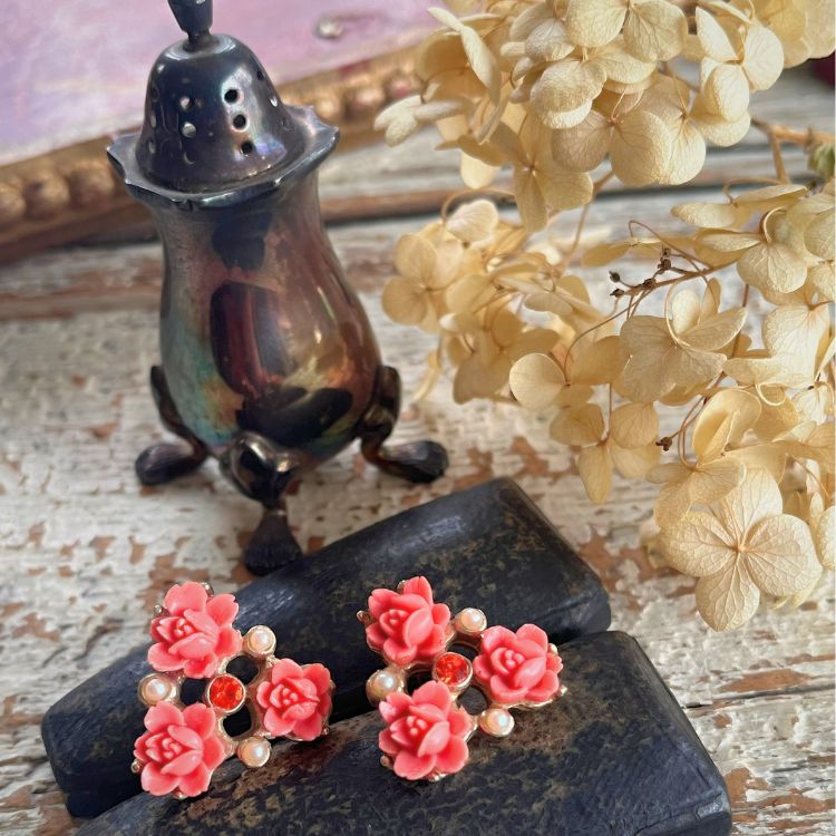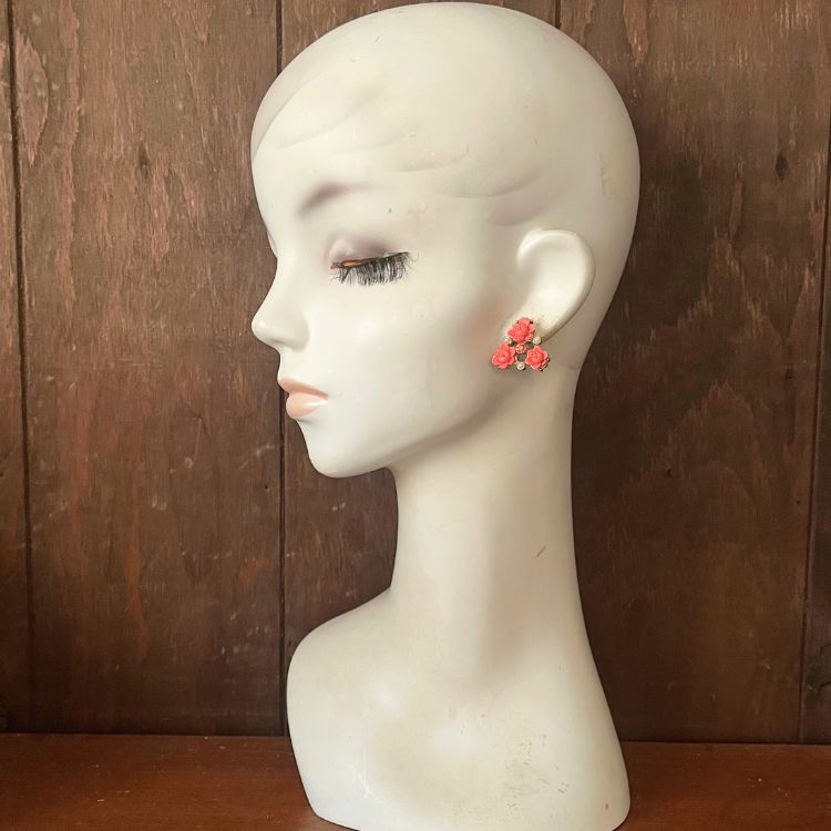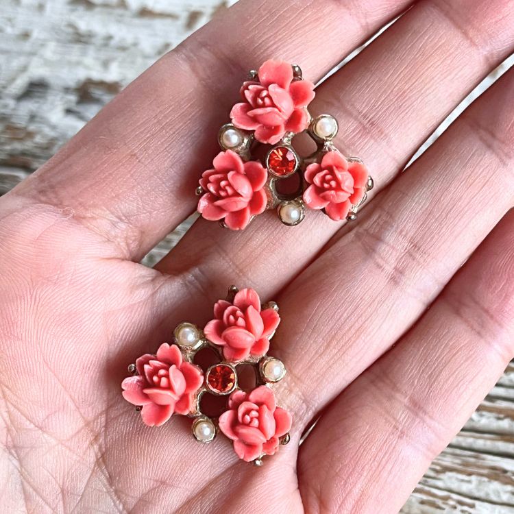 【ピアス】ベークライト 薔薇 ローズ コーラル 50’s USA