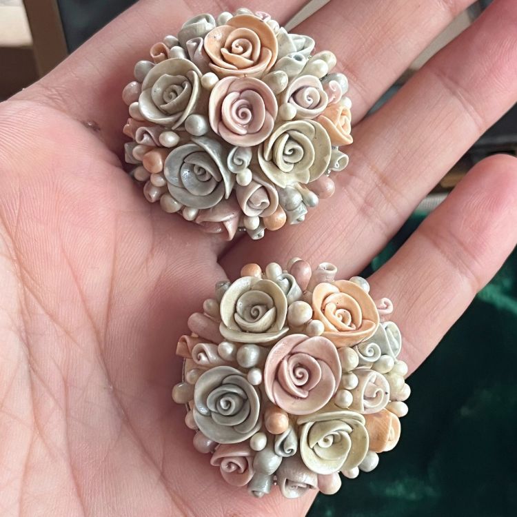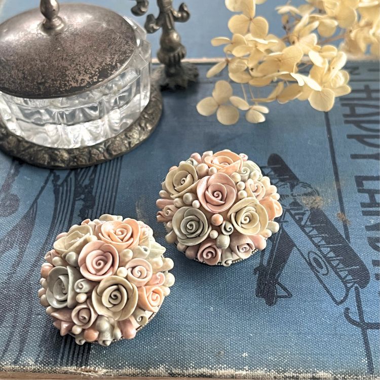 【ピアス】花 ブーケ ペールトーン 淡色 丸 80’sフランス