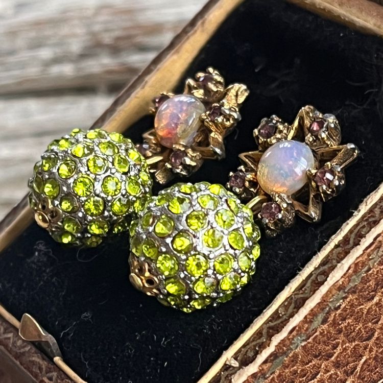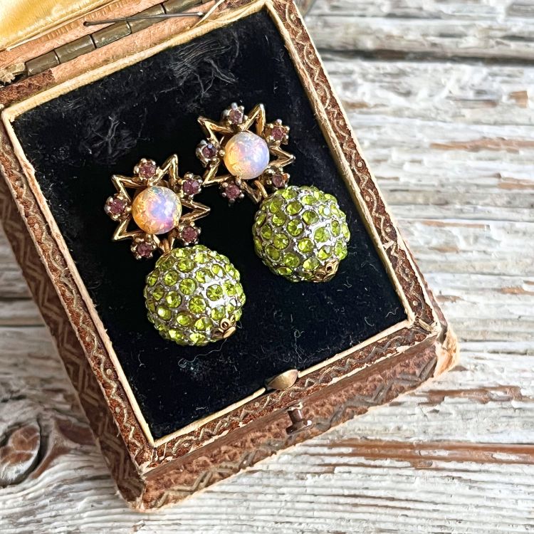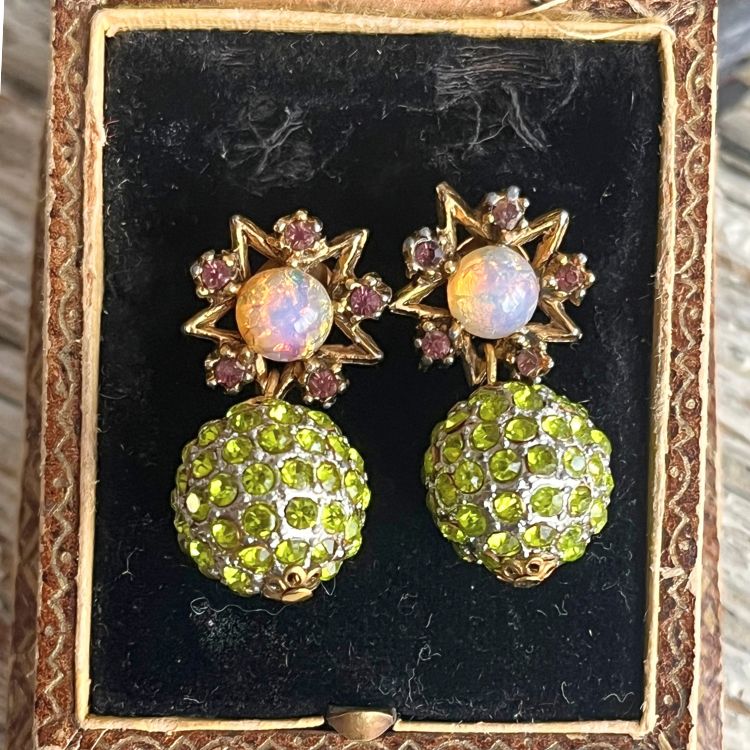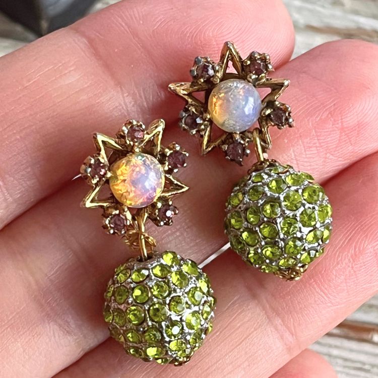 ロマンチックなFauxオパールの星の下に、グリーンのビジュが輝くボールをスイングさせました。