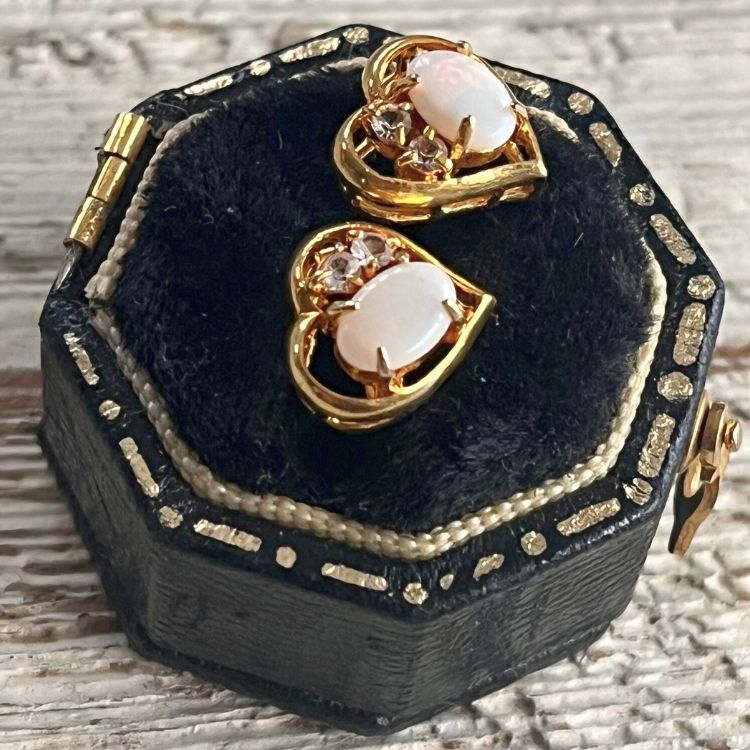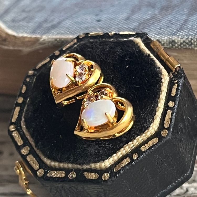 【ピアス】オパール ジルコニア ミニハート 80’s USA