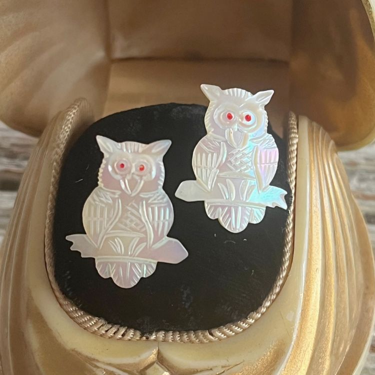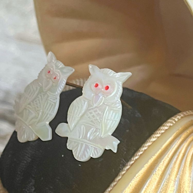【ピアス】フクロウ ミミズク owl マザーオブパール 60’sイギリス