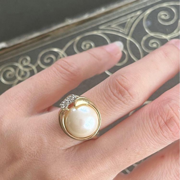 【リング】マベパール風 3石ビジュ 18KGE ゴールドリング 80’sフランス