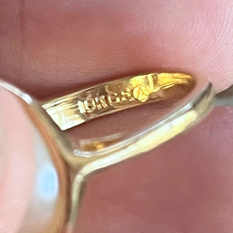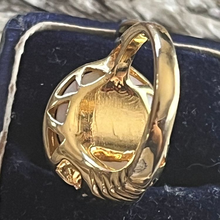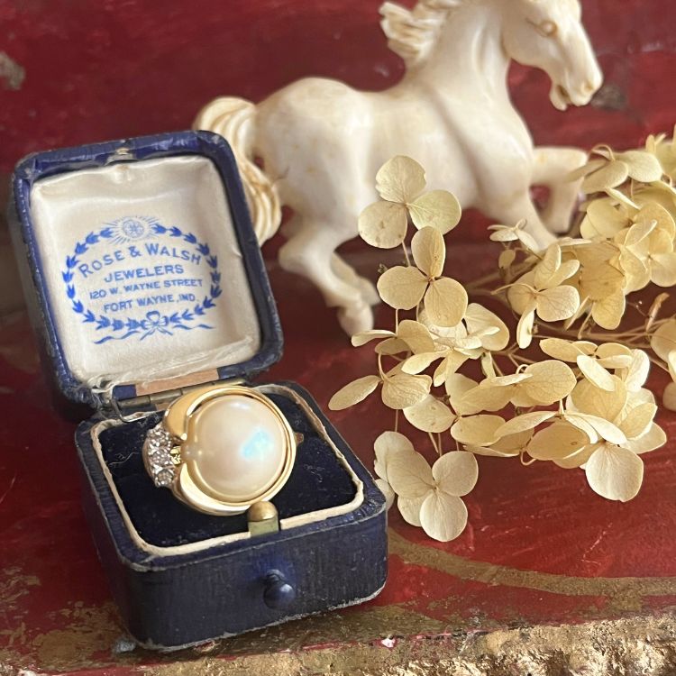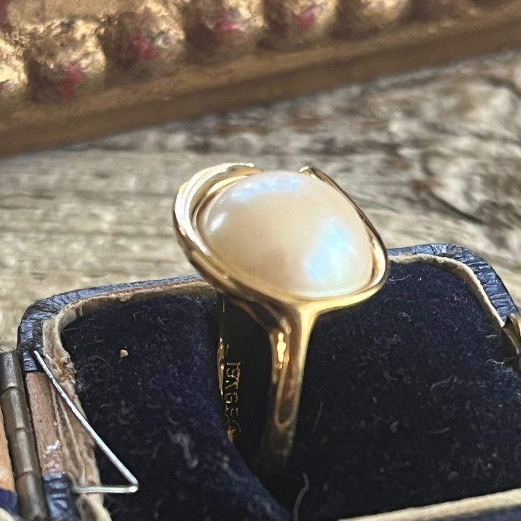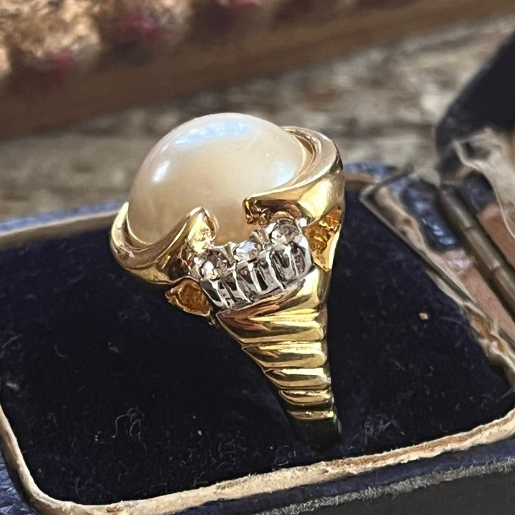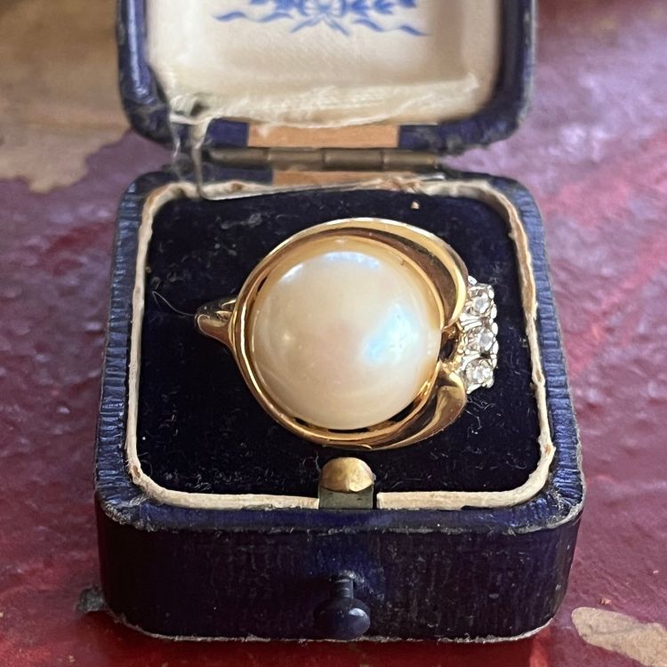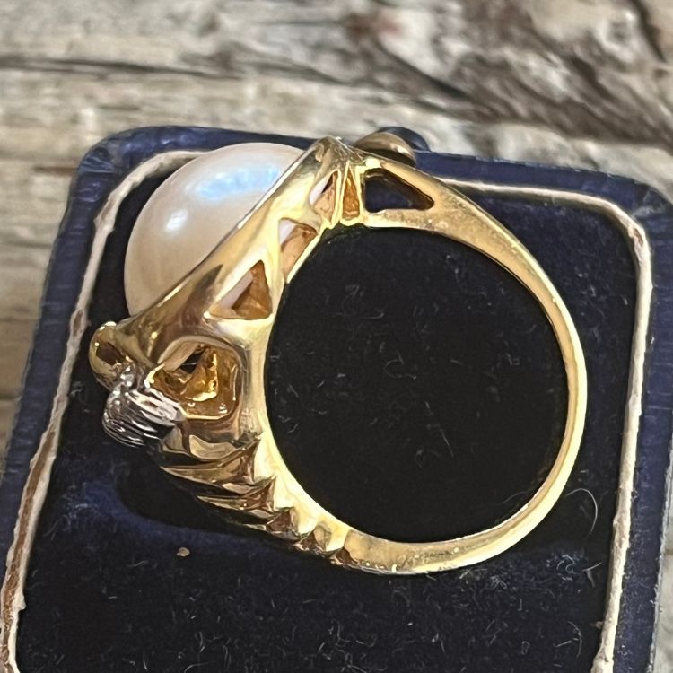 マベ風のシルキーなアイボリーパールがアクセントされたリングになります。