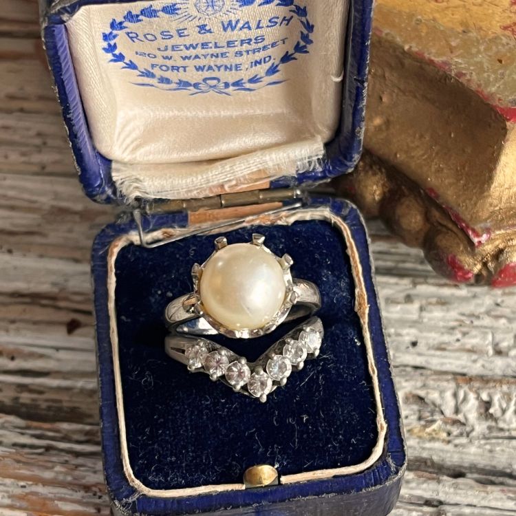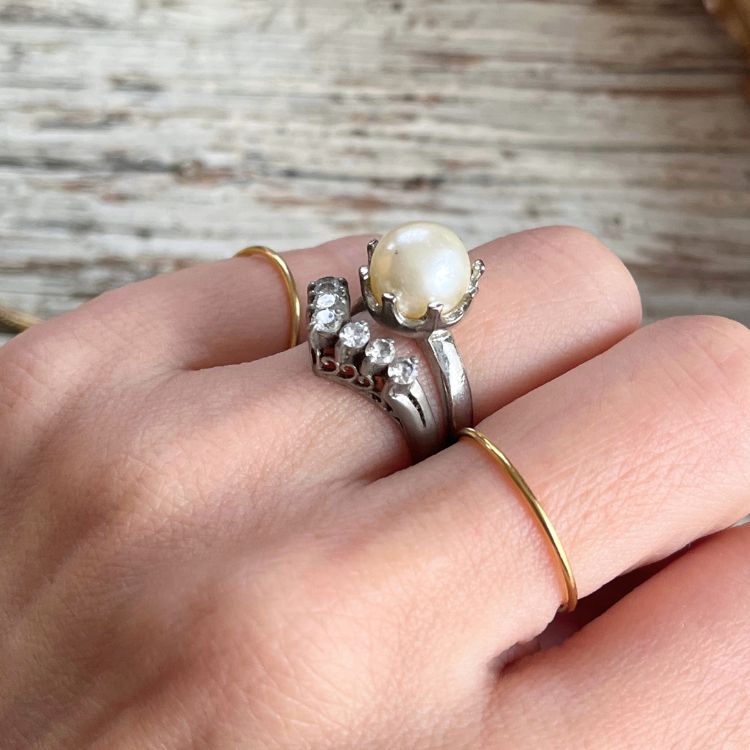 【リング】2連 V字 大粒パール 925刻印 フランスvintage