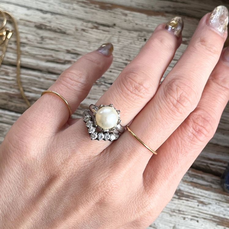 パールが存在感のあるサイズなので人と被らない個性があり、vintageでありながらもモダンアートジュエリーに似た世界観が魅力的です。