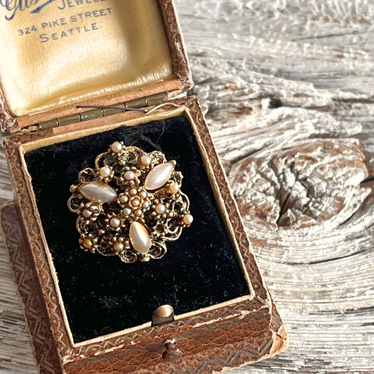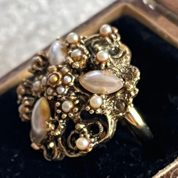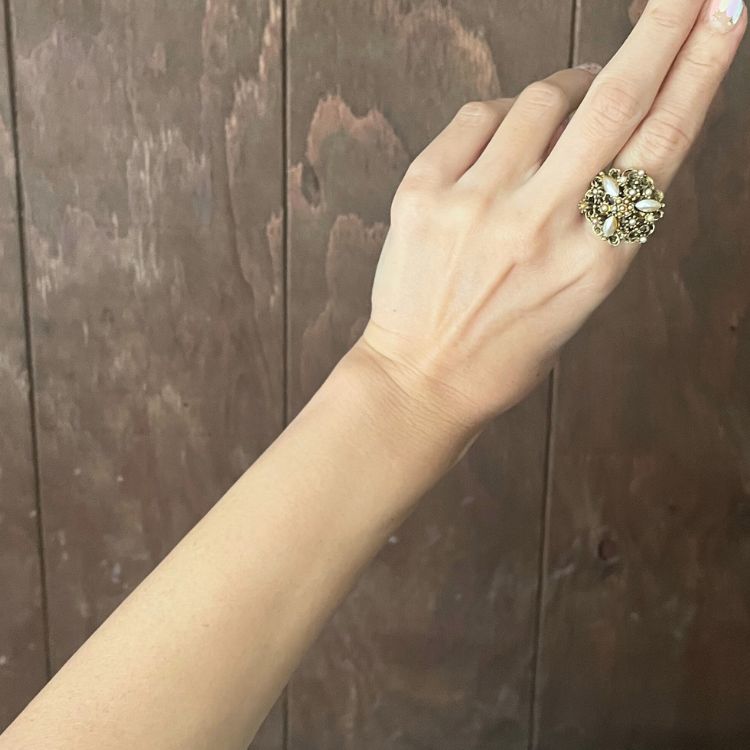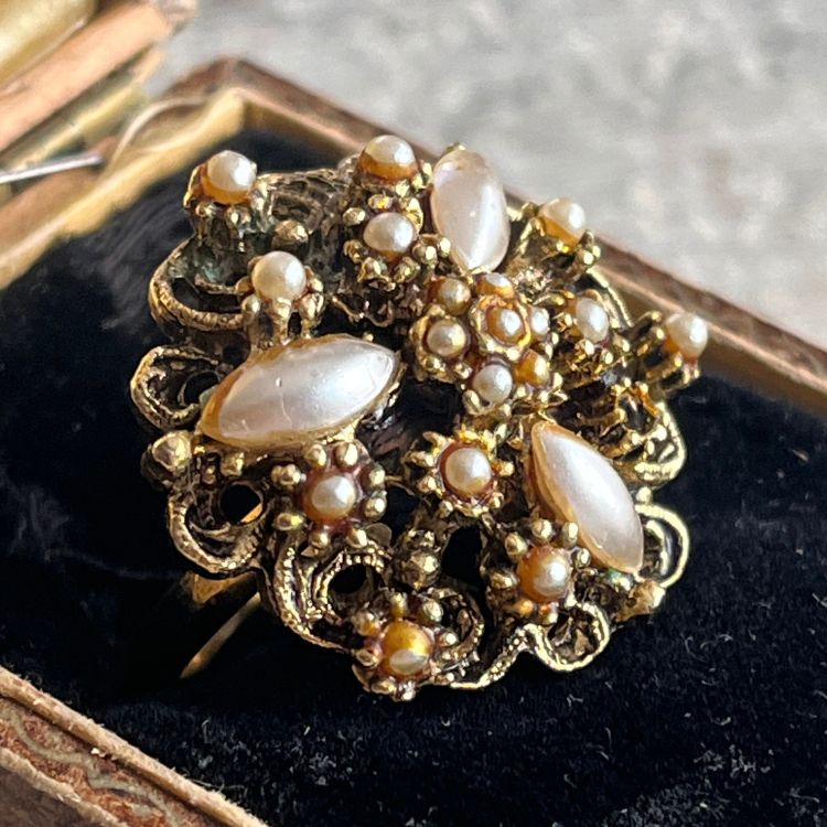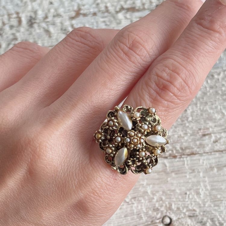 【リング】パール 透かし ボタニカル アール・ヌーヴォー 70’sフランス
