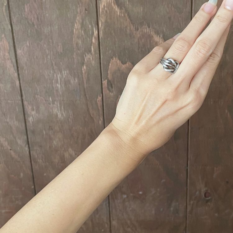 ノットデザイン(結び目)の様にも見え、ガツンとしたメンズライクな佇まいがクールな逸品です。