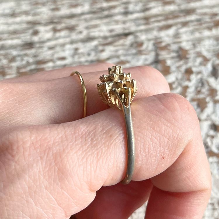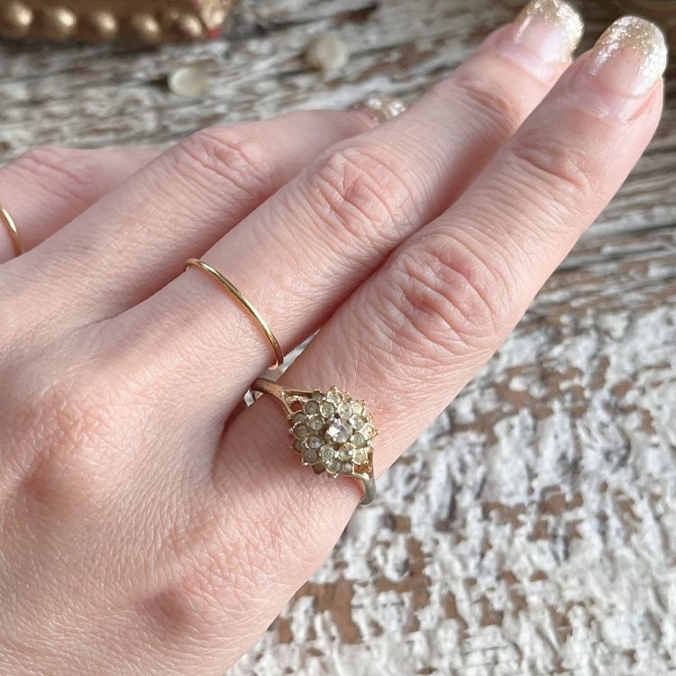 小さなビジュが贅沢に使われたリングになります。