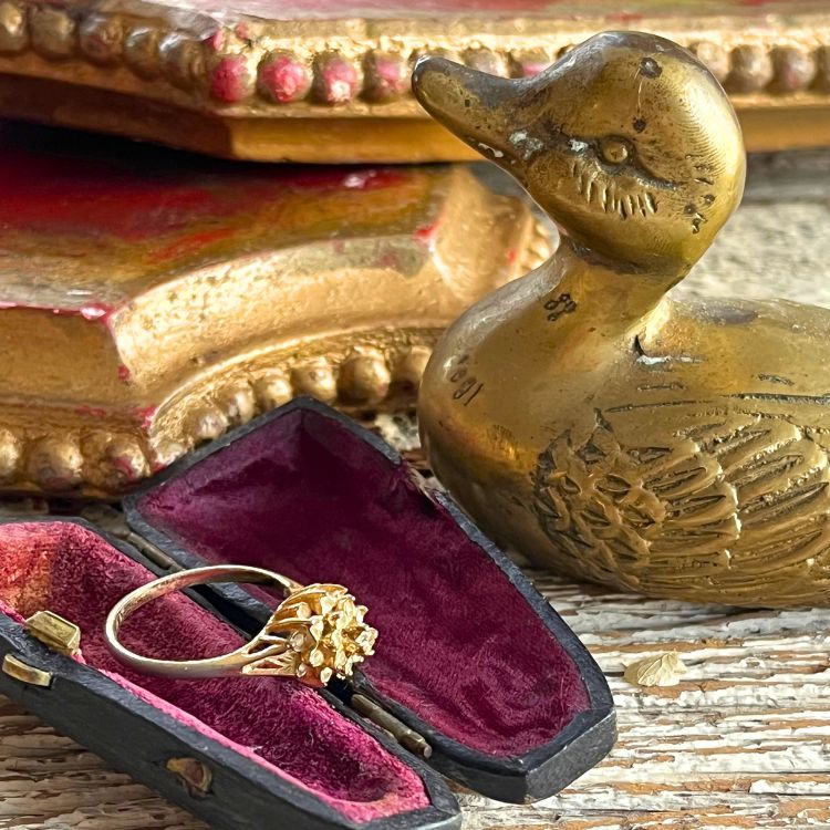 【リング】ビジュ ゴールド 立体的 50'sフランス