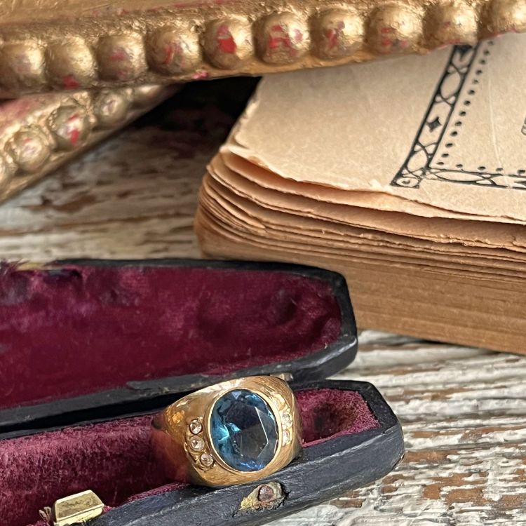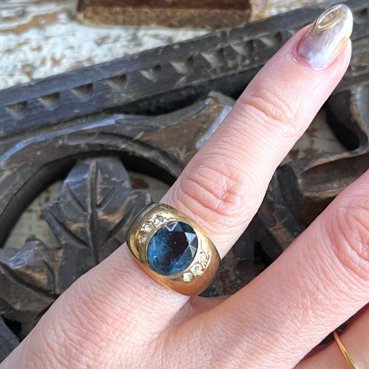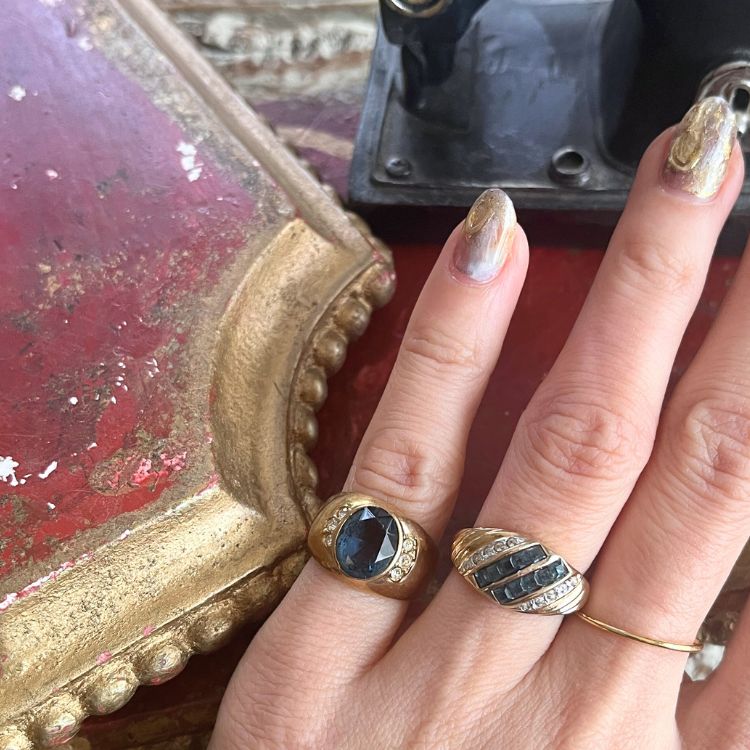 【リング】サファイアブルー×ゴールド 太幅 70’sフランス 7.5号