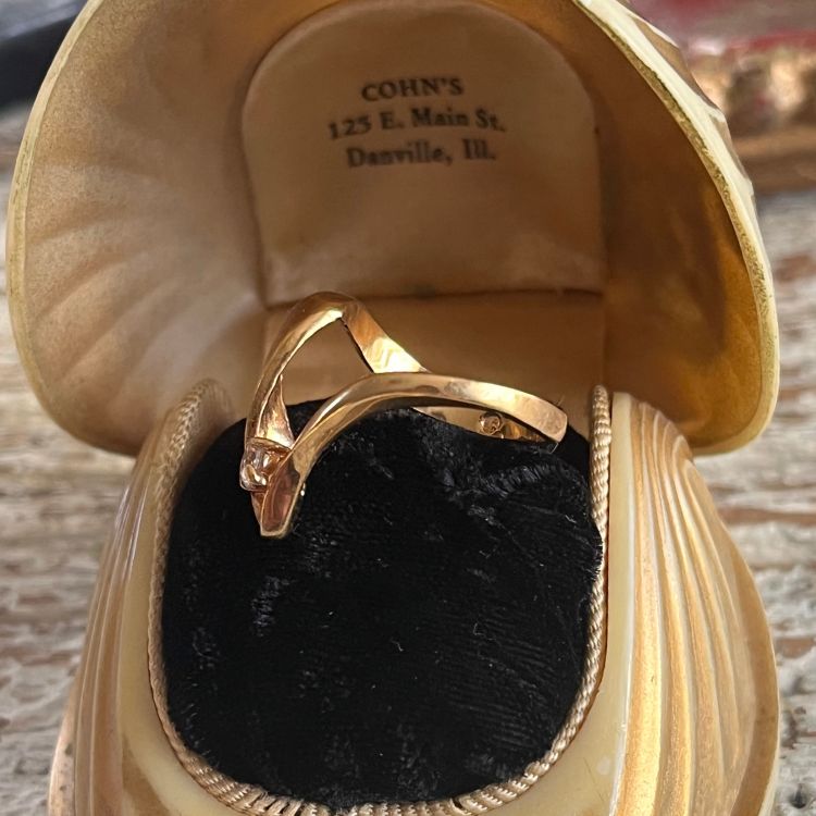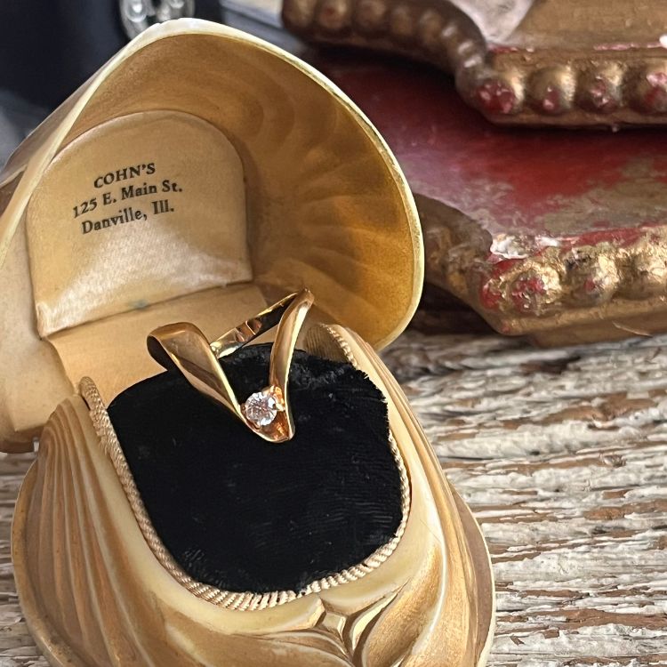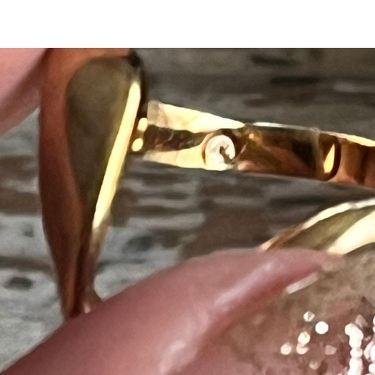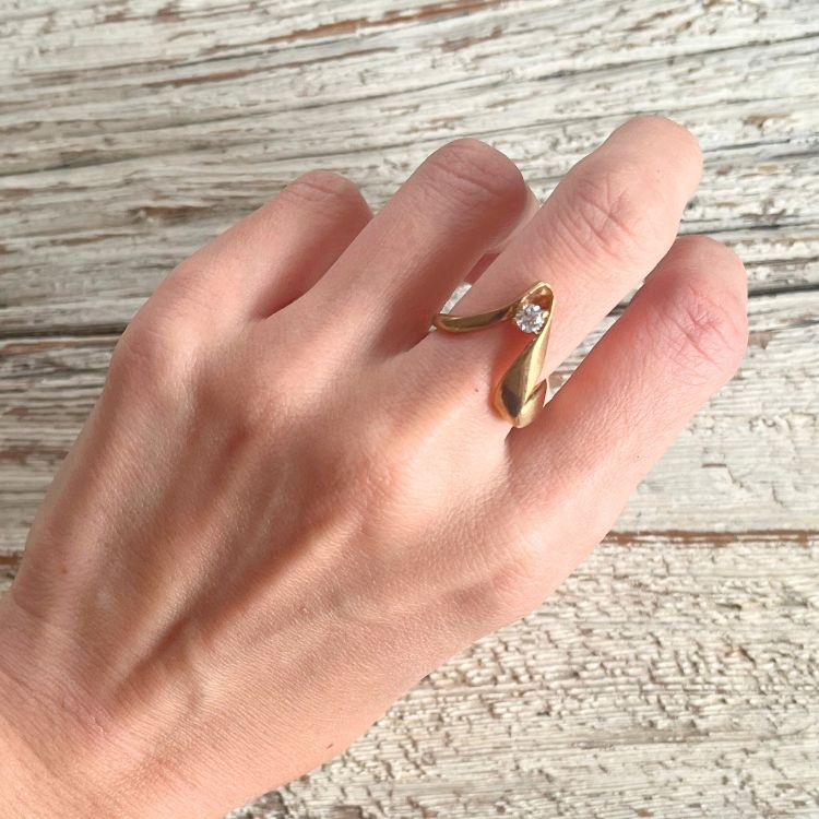 【リング】ツイストV字 一粒ストーン ゴールド 80’sフランス