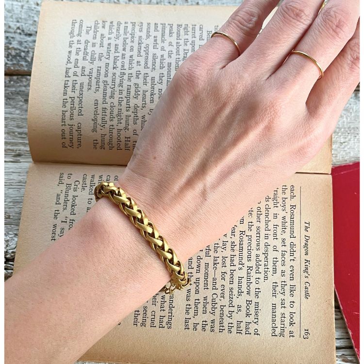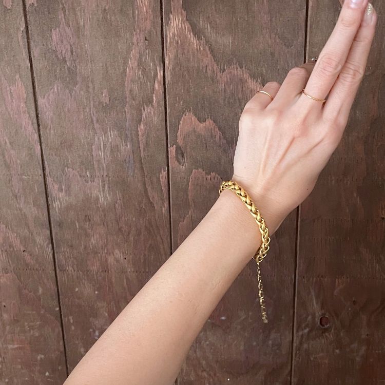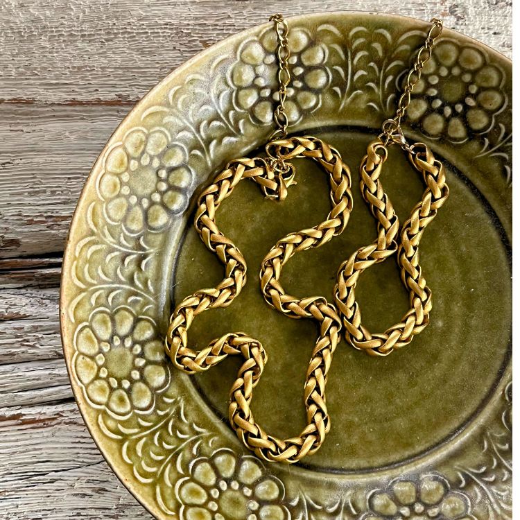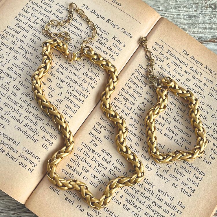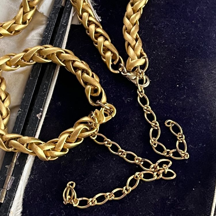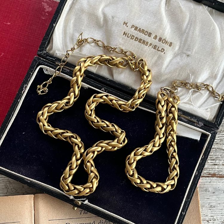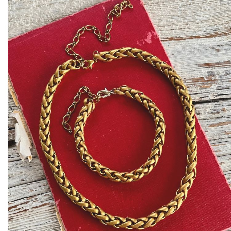艶消しのマットゴールドのチェーンが、独特の雰囲気があるチョーカー&ブレスの2点セットになります。